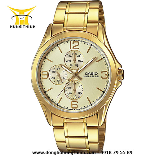 Đồng hồ 3 kim chính hãng CASIO DÂY KIM LOẠI NAM STANDARD MTP-V301G-9AUDF dây, vỏ inox đúc nguyên khối mạ màu vàng bằng công nghệ PVD không phai sang trọng, bảo hành quốc tế chính hãng đồng hồ Casio máy 1 năm. Khả năng chịu nước 30M