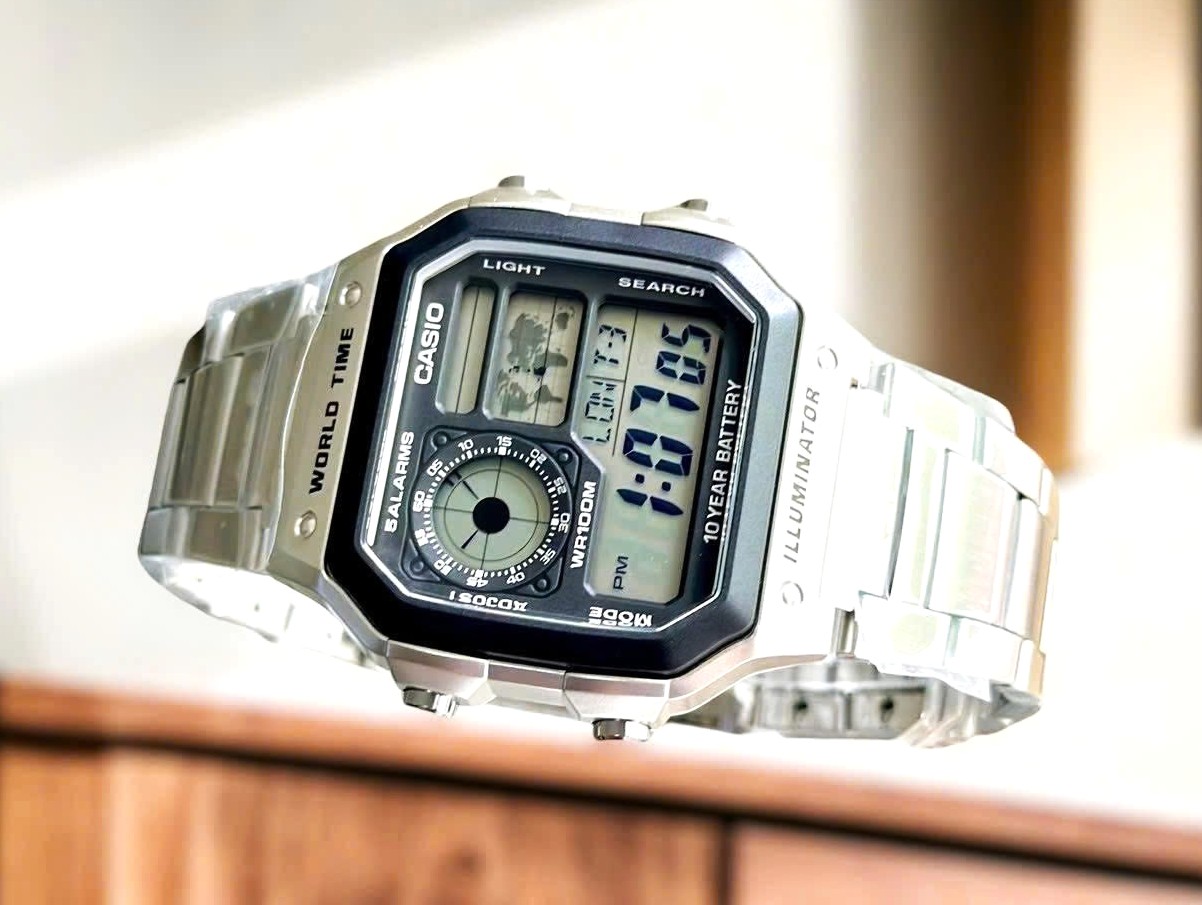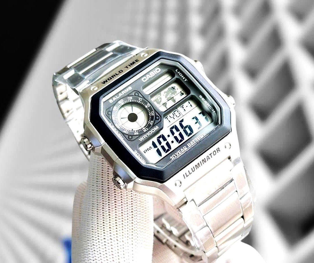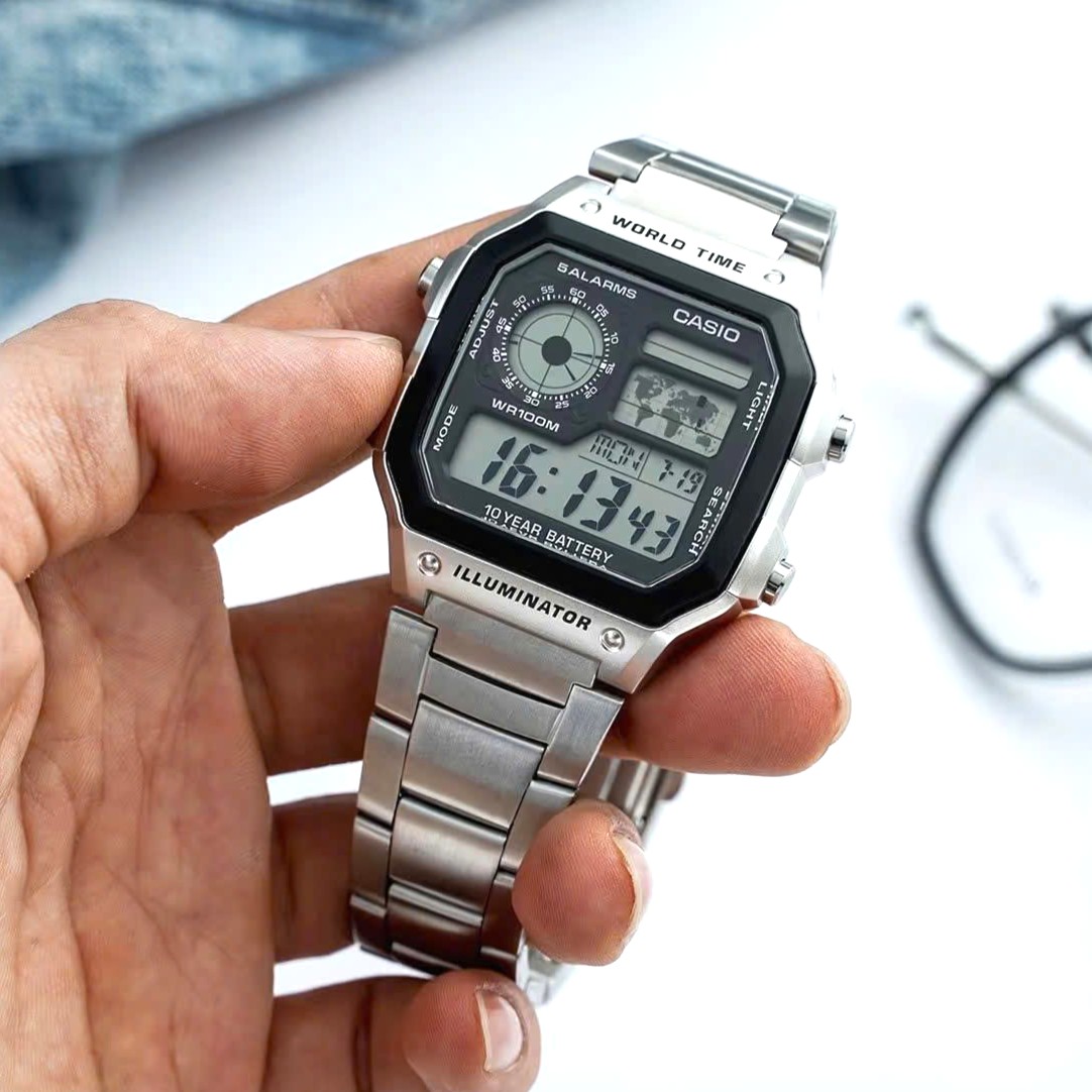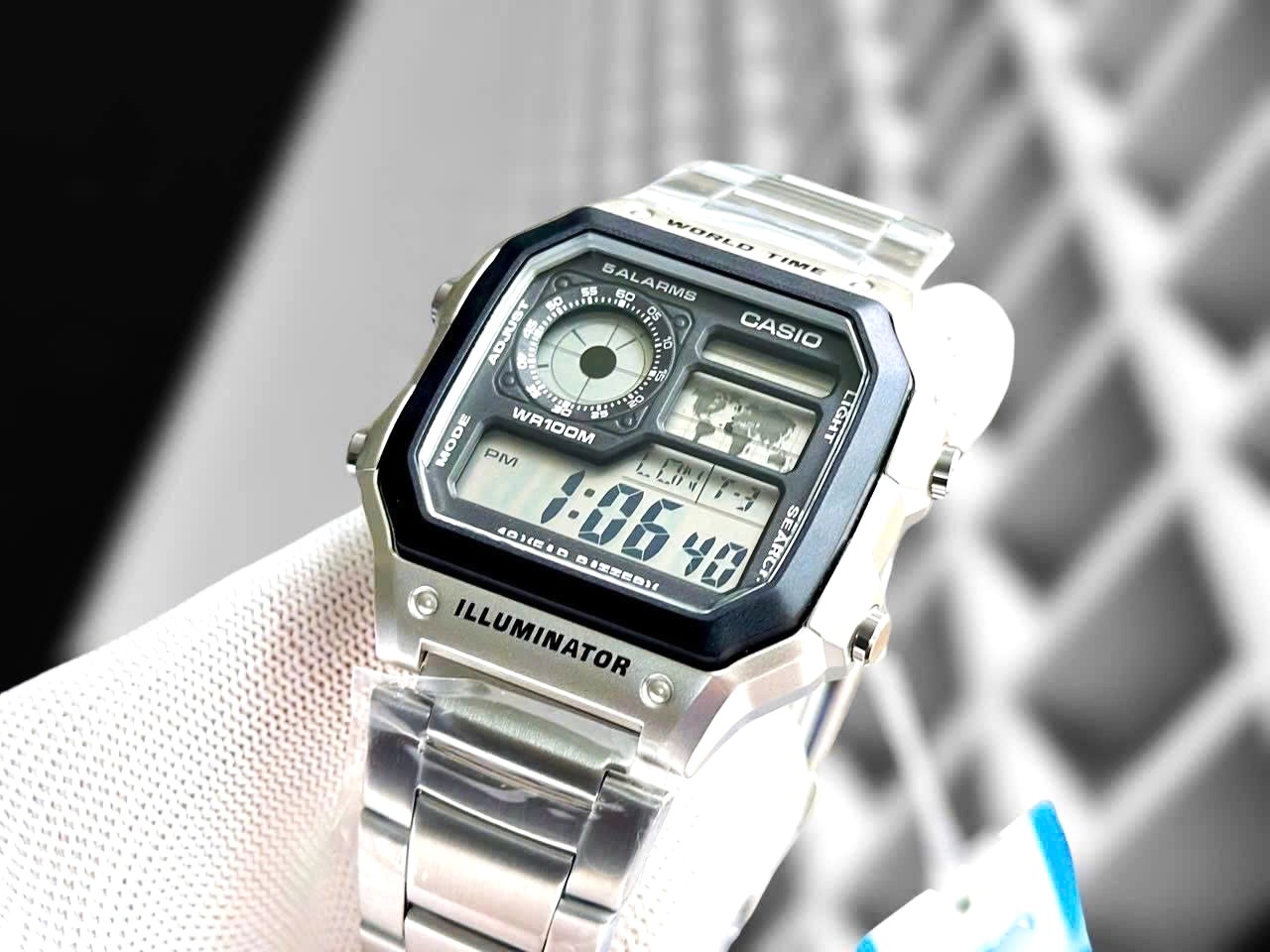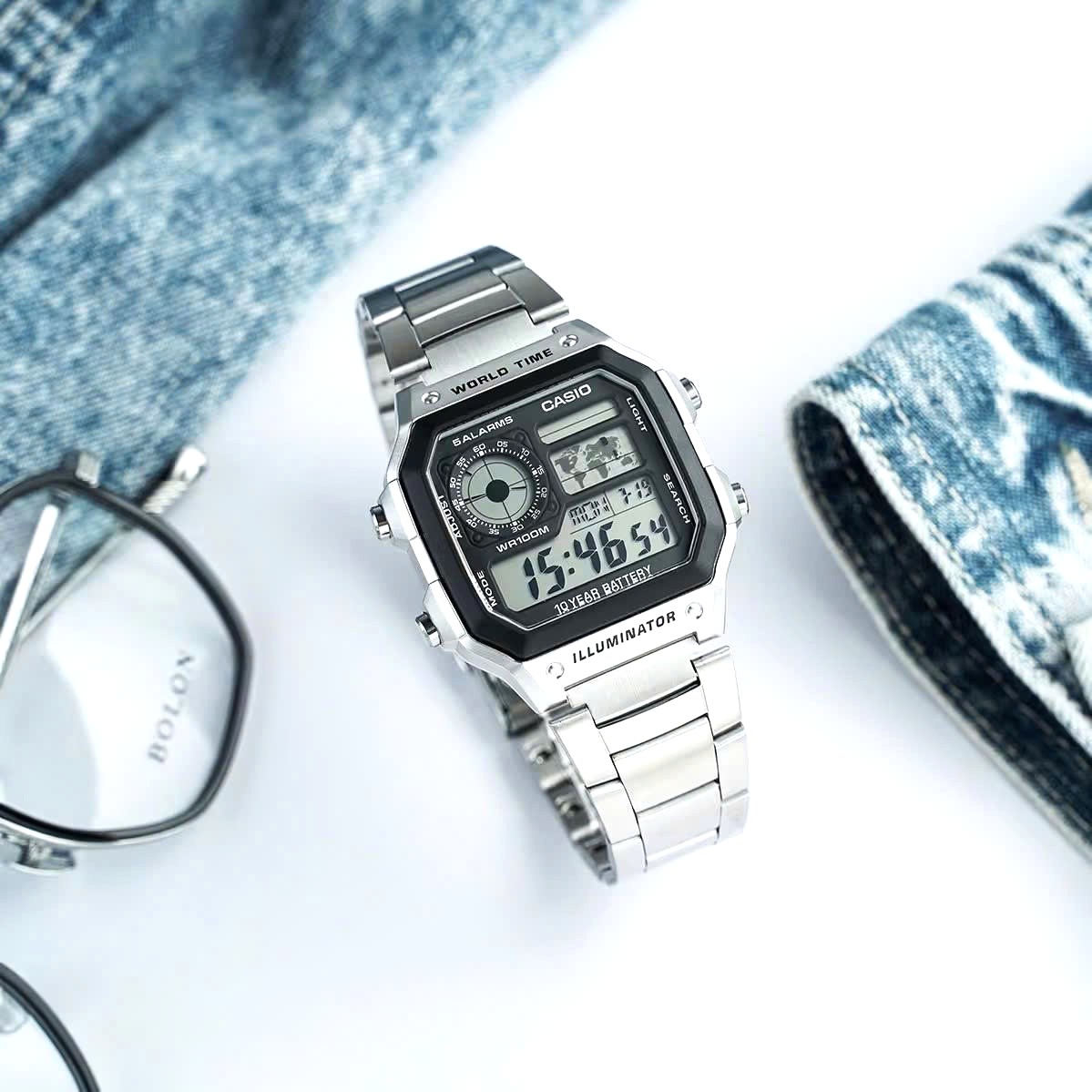 Đồng hồ casio chính hãng CASIO NAM JAMES BOND DIGITAL AE-1200WHD-1AVDF kiểu dáng đồng hồ thể thao dây, Dây thép không gỉ, vỏ nhựa cao cấp, chống sốc, độ chống vào nước 100M nên có thể thoải mái sử dụng để chơi các môn thể thao dưới nước.