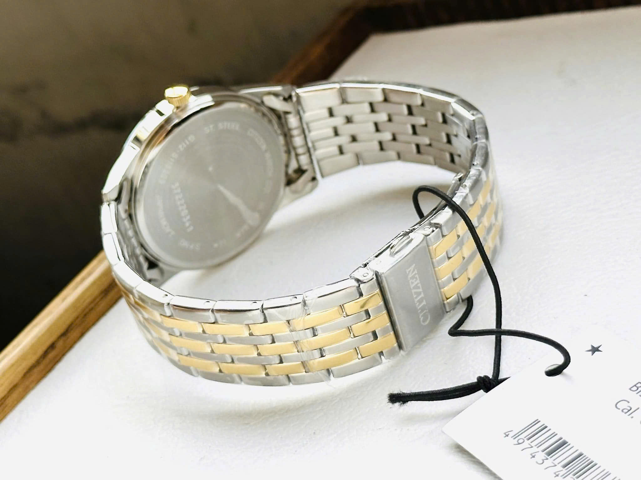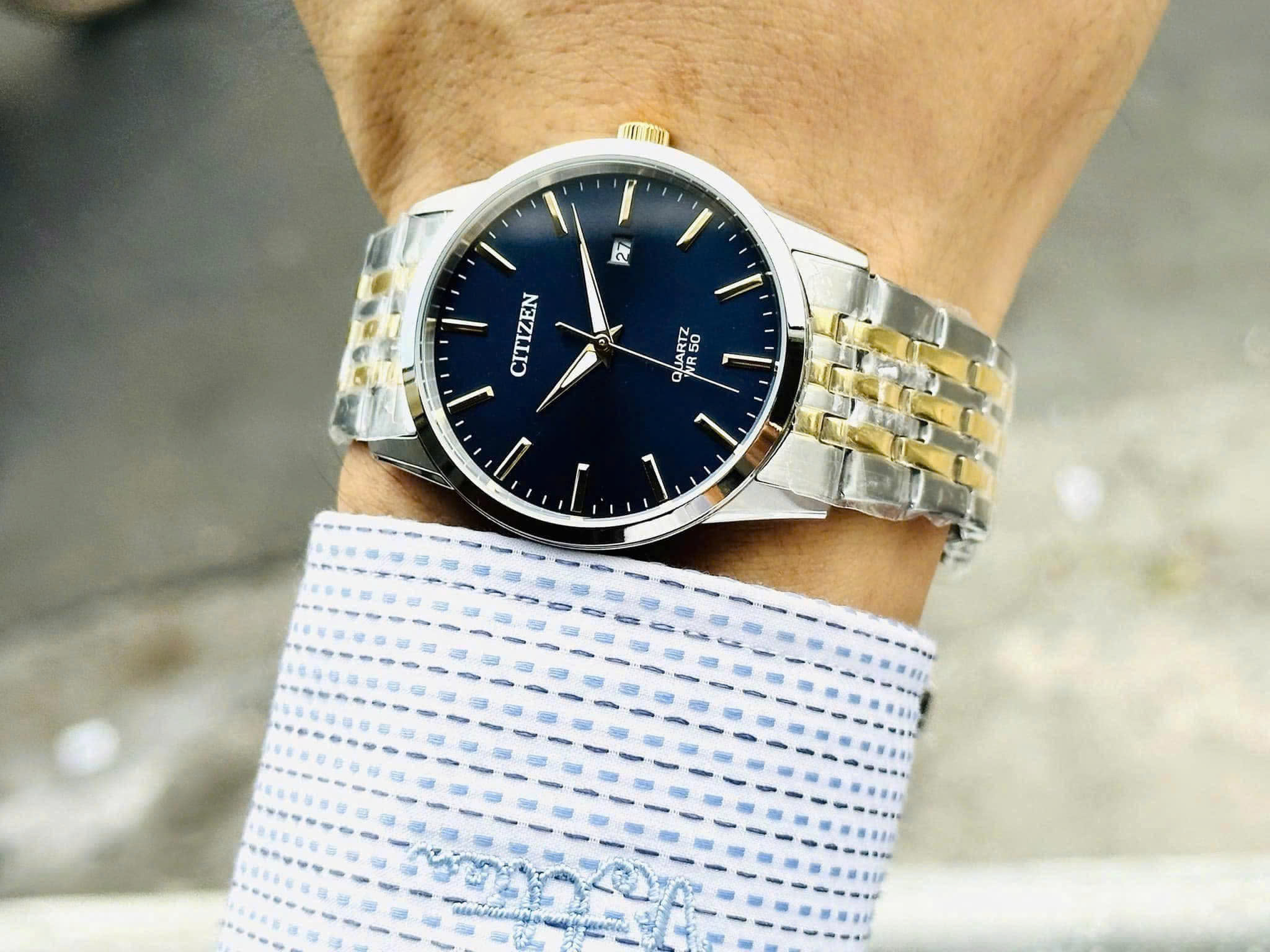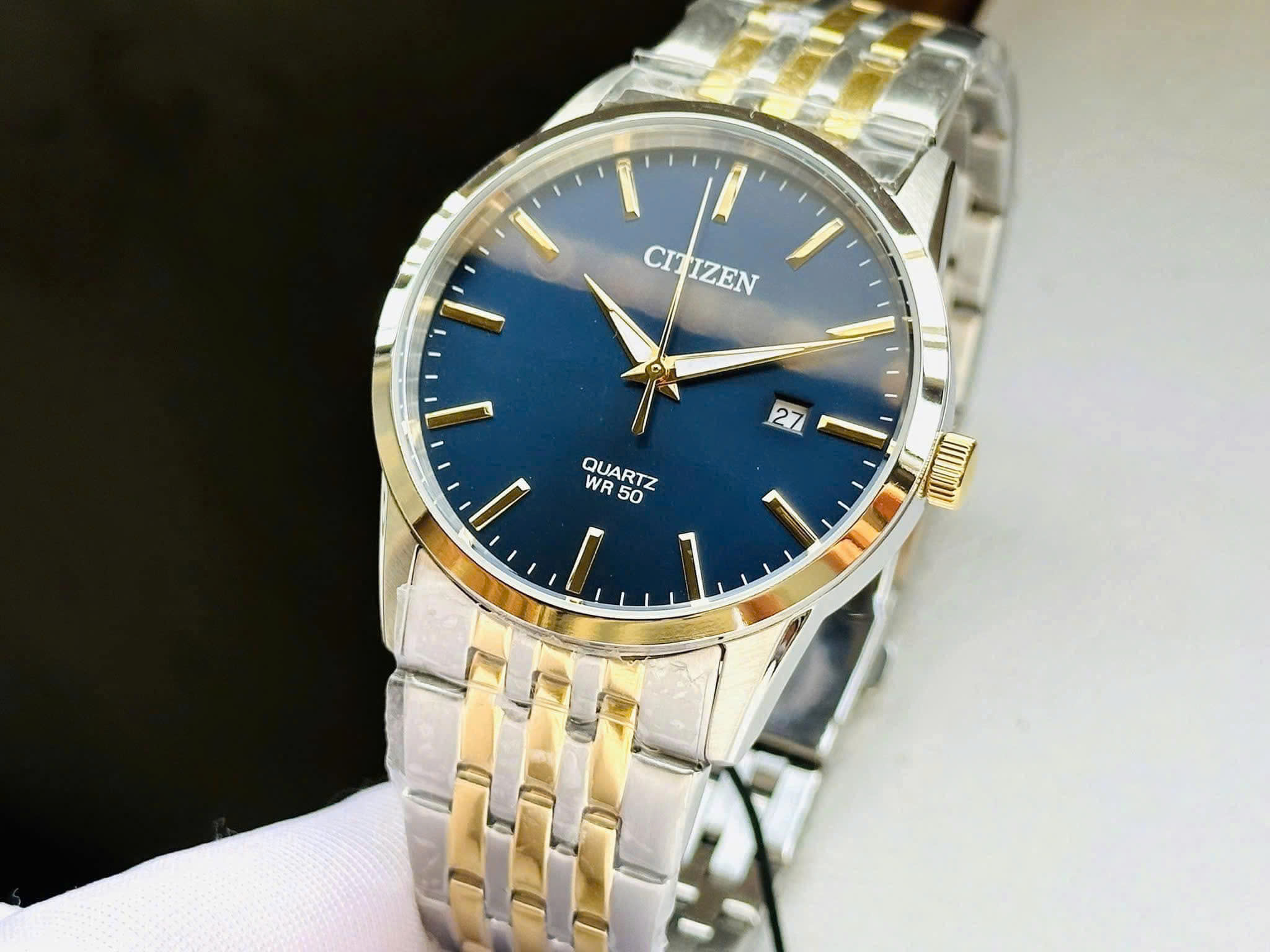 CITIZEN DÂY KIM LOẠI NAM 3 KIM BI5006-81L thương hiệu đồng hồ cao cấp Nhật Bản, dây vỏ inox đúc nguyên khối mạ màu vàng công nghệ PVD cao cấp không phai, kính khoáng cứng chống va đập. Kiểu dáng đồng hồ thời trang 3 kim quay hiển thị giờ, phút, giây truyền thống, và 1 lịch ngày.