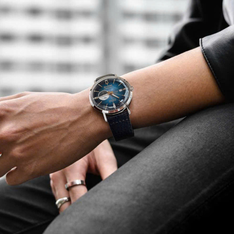 ĐỒNG HỒ BULOVA Aerojet NAM 96B374 – AUTOMATIC – DÂY DA – 3ATM – 41MM chính hãng.