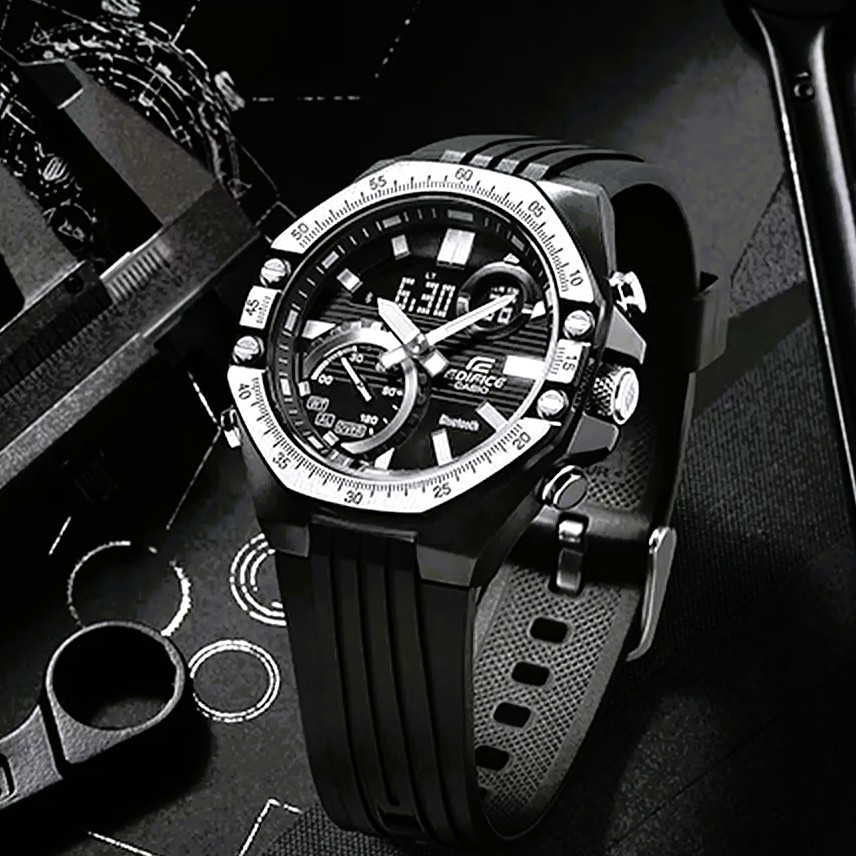 ĐỒNG HỒ CASIO EDIFICE NAM ECB-10TP-1ADF – BLUETOOTH- DÂY CAO SU – 10ATM – 48.5MM là thương hiệu đồng hồ chính hãng từ Nhật Bản đã có mặt lâu đời tại thị trường Việt Nam, sử dụng bộ máy điện tử kết hợp cùng với kim độc đáo, chế độ Mobile link (Kết nối không dây sử dụng Bluetooth®) sử dụng ứng dụng EDIFICE Connected kết nối với điện thoại thông minh. Độ chống nước lên đến 100M thoải mái sử dụng để bơi lội, hoạt động thể thao dưới nước vv…