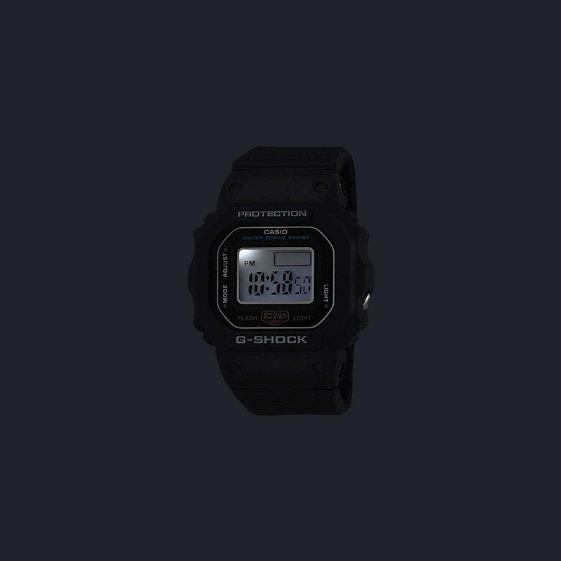 Lấy cảm hứng từ dòng đồng hồ G-SHOCK 5600, mặt đồng hồ được trang bị màn hình LCD 6 chữ số, không chỉ hiển thị thời gian chính xác đến từng giây mà còn có chức năng lịch, giờ kép và bấm giờ. Ba nút bên hông không chỉ đơn thuần là trang trí. Chúng còn thực hiện nhiều chức năng khác nhau, bao gồm chuyển đổi chế độ, bật đèn, v.v.
