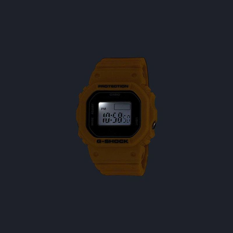 Lấy cảm hứng từ dòng đồng hồ G-SHOCK 5600, mặt đồng hồ được trang bị màn hình LCD 6 chữ số, không chỉ hiển thị thời gian chính xác đến từng giây mà còn có chức năng lịch, giờ kép và bấm giờ. Ba nút bên hông không chỉ đơn thuần là trang trí. Chúng còn thực hiện nhiều chức năng khác nhau, bao gồm chuyển đổi chế độ, bật đèn, v.v.