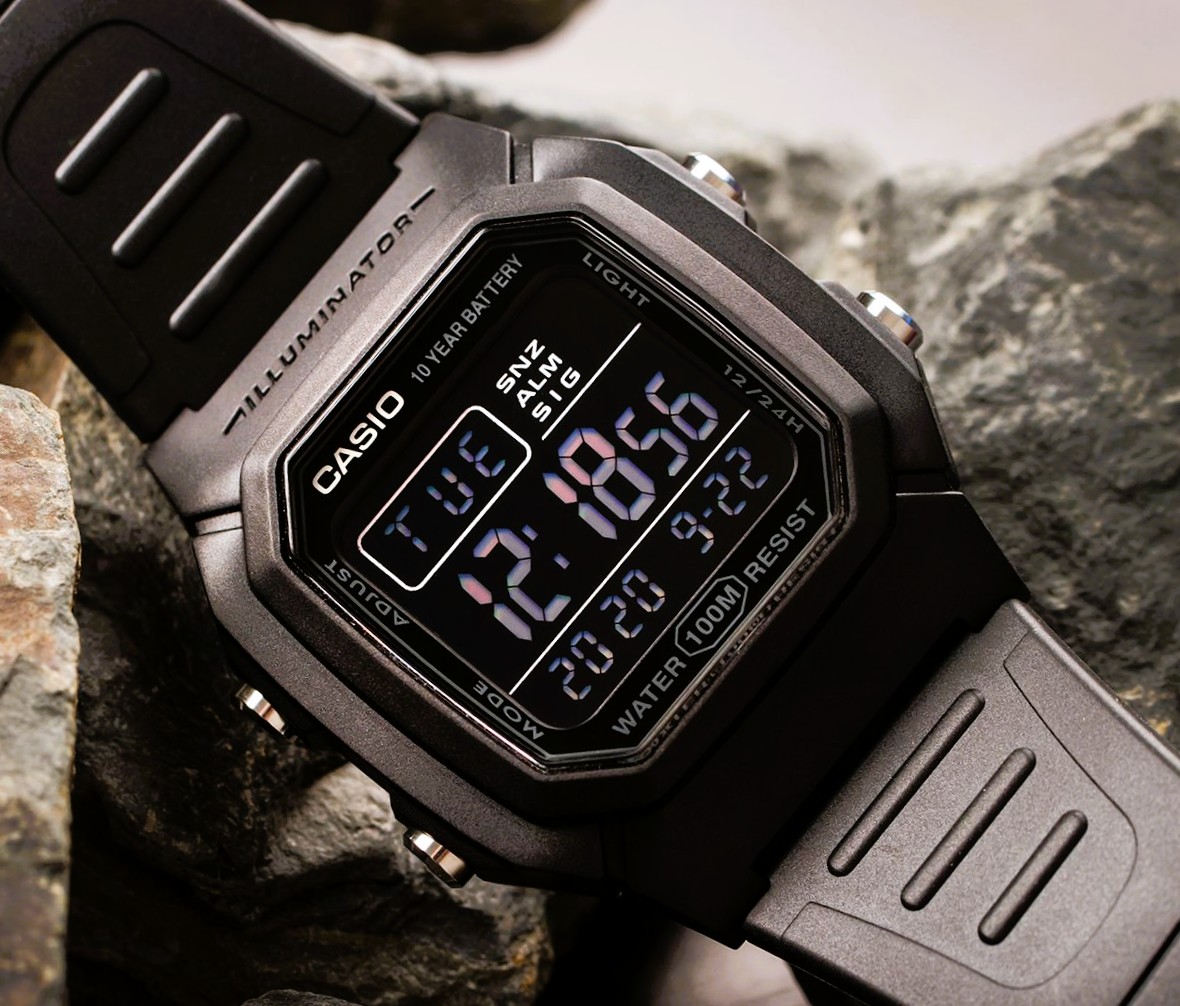 ĐỒNG HỒ CASIO NAM ĐIỆN TỬ DÂY VỎ NHỰA W-800H-1BVDF thiết kế kiểu dáng thể thao mạnh mẽ với độ chống nước 10ATM (100M) nên sử dụng bơi lội thoải mái mà không ngại đồng hồ bị vô nước. Đi kèm là nhiều chức năng nổi bật như dèn LED xem giờ ban đêm, giờ thể thao, báo thức, giờ quốc tế vv…