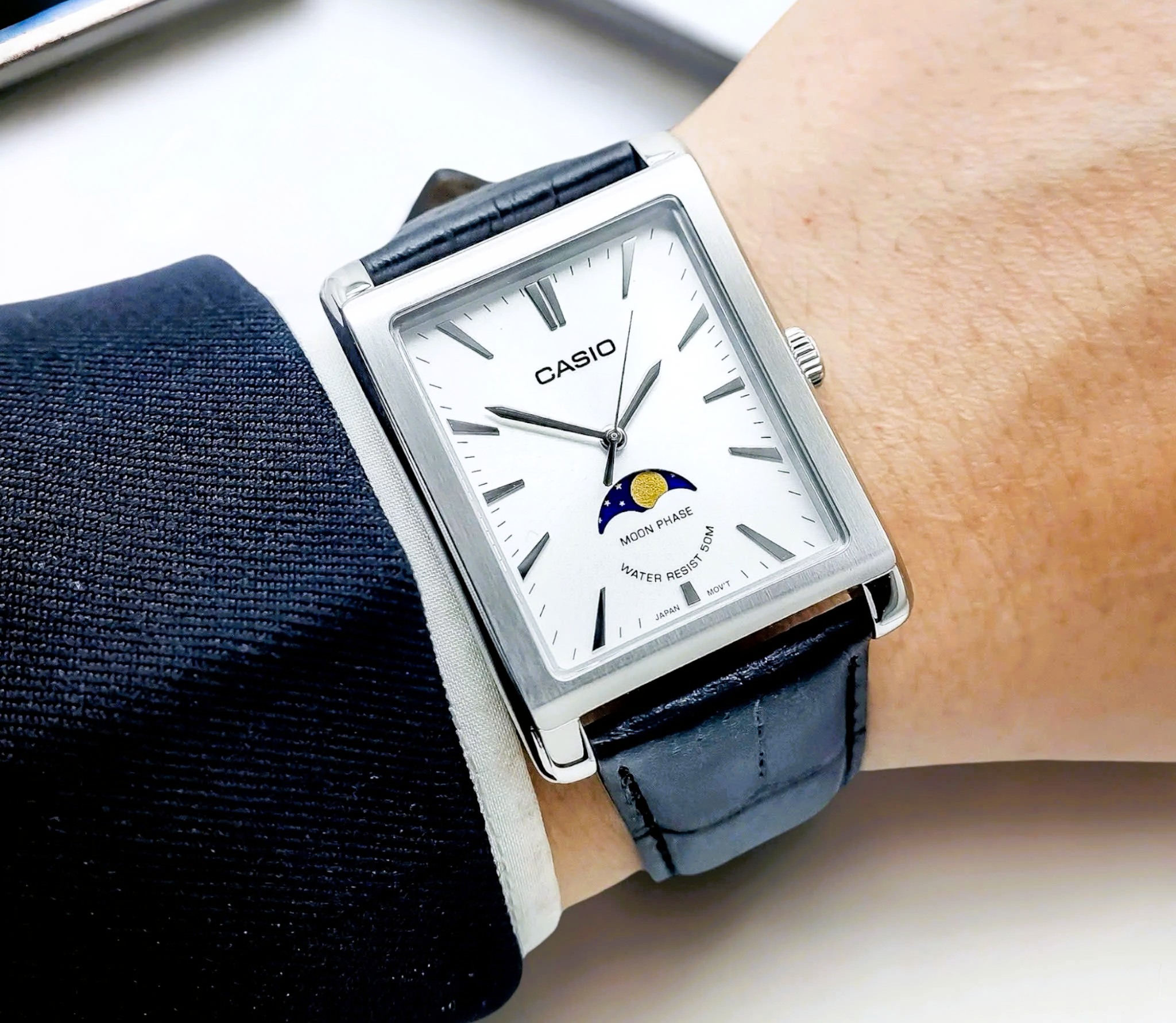 ĐỒNG HỒ CASIO – QUARTZ (PIN) – NAM – MOONPHASE – DÂY DA – MTP-M105L-7AVDF