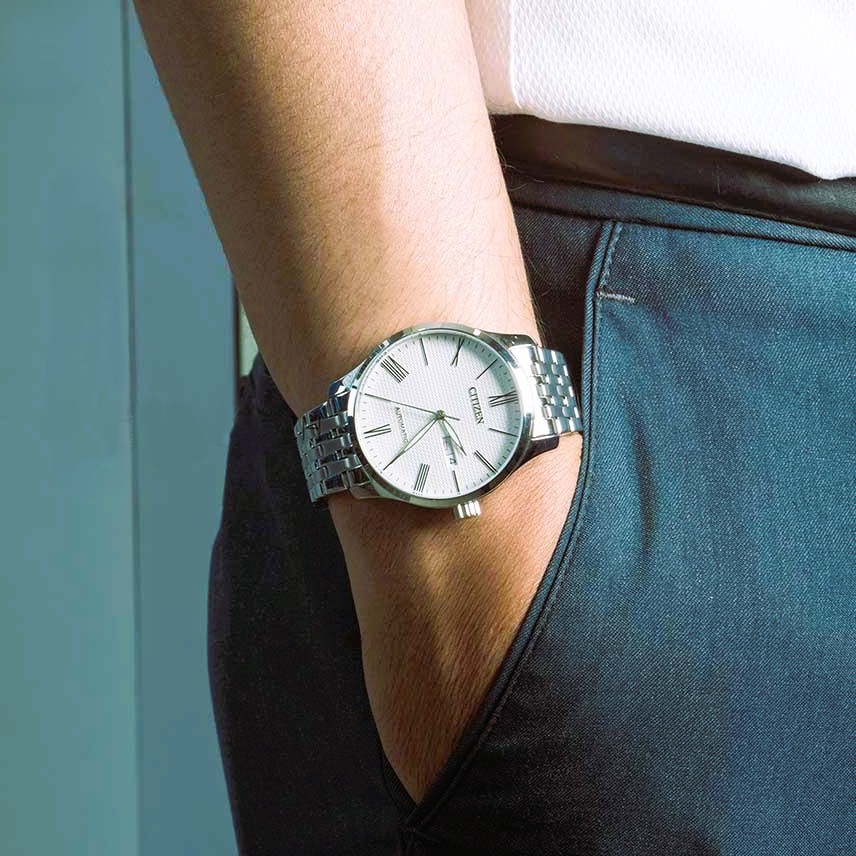 ĐỒNG HỒ CITIZEN – AUTOMATIC – NAM – KÍNH KHOÁNG – 5ATM – 40MM – NH8350-59A Thiết kế kiểu dáng thanh lịch, cổ điển nhưng không kém phần sang trọng phù hợp cho mọi lứa tuổi. Sử dụng bộ máy cơ -tự động (Automatic) Miyota 8200 chính hãng Nhật Bản rất bền bỉ, thời gian trữ cót lên đến 45 giờ. Độ chống nước 50M (5ATM).