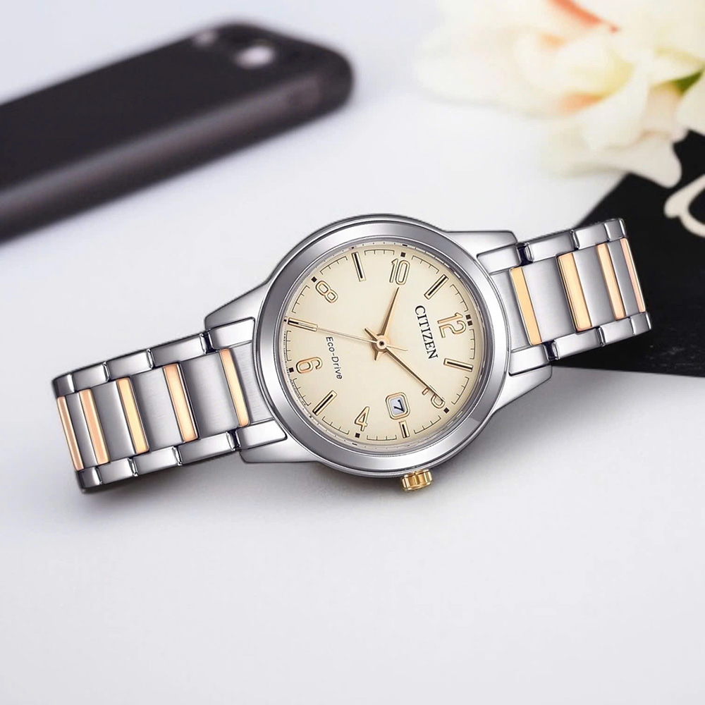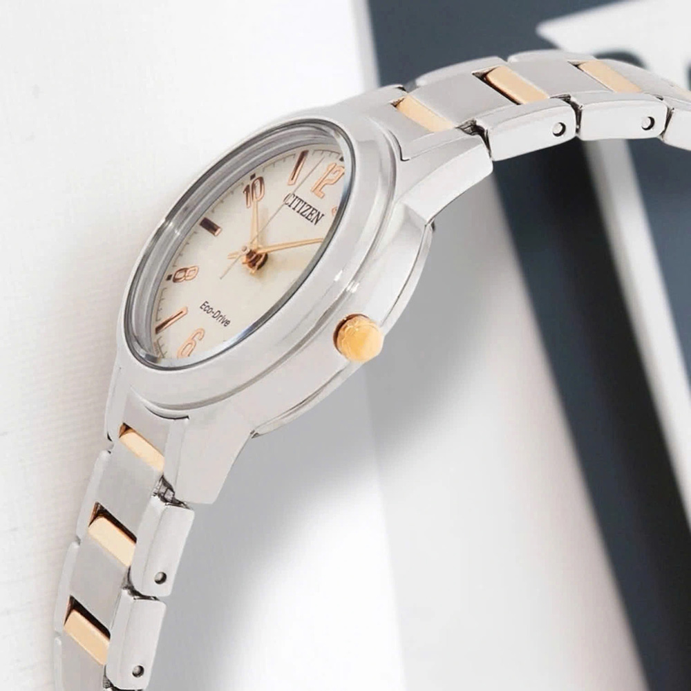 ĐỒNG HỒ CITIZEN – ECO-DRIVE – NỮ – KÍNH KHOÁNG – 29.4MM – FE1244-72A Thiết kế kiểu dáng thời trang nữ tính . Sử dụng bộ máy quartz với công nghệ pin năng lượng hấp thụ ánh sáng (công nghệ Eco-Drive) độc quyền từ hãng đồng hồ CITIZEN không cần phải thay pin trong suốt quá trình sử dụng. Độ chống nước 30M (3ATM).