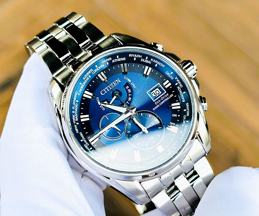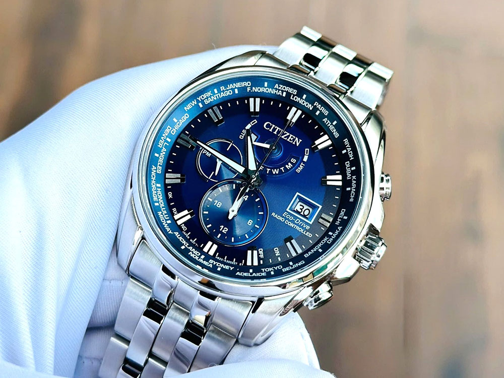 Thiết kế Radio-Controlled chính xác, Citizen AT9120-89L còn thu hút bởi hệ thống chức năng toàn diện. Với lịch vạn niên, GMT, World Time và Radio-Controlled tự động hiệu chỉnh giờ. Chiếc đồng hồ này mang đến trải nghiệm đeo bền bỉ và đầy thú vị. Đồng thời thể hiện tinh thần công nghệ tiên tiến đặc trưng.