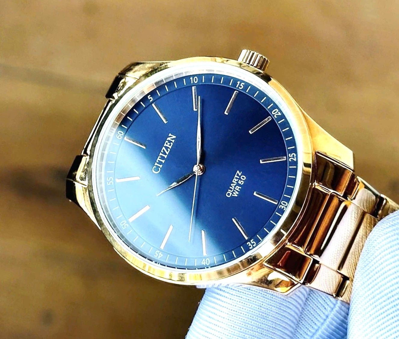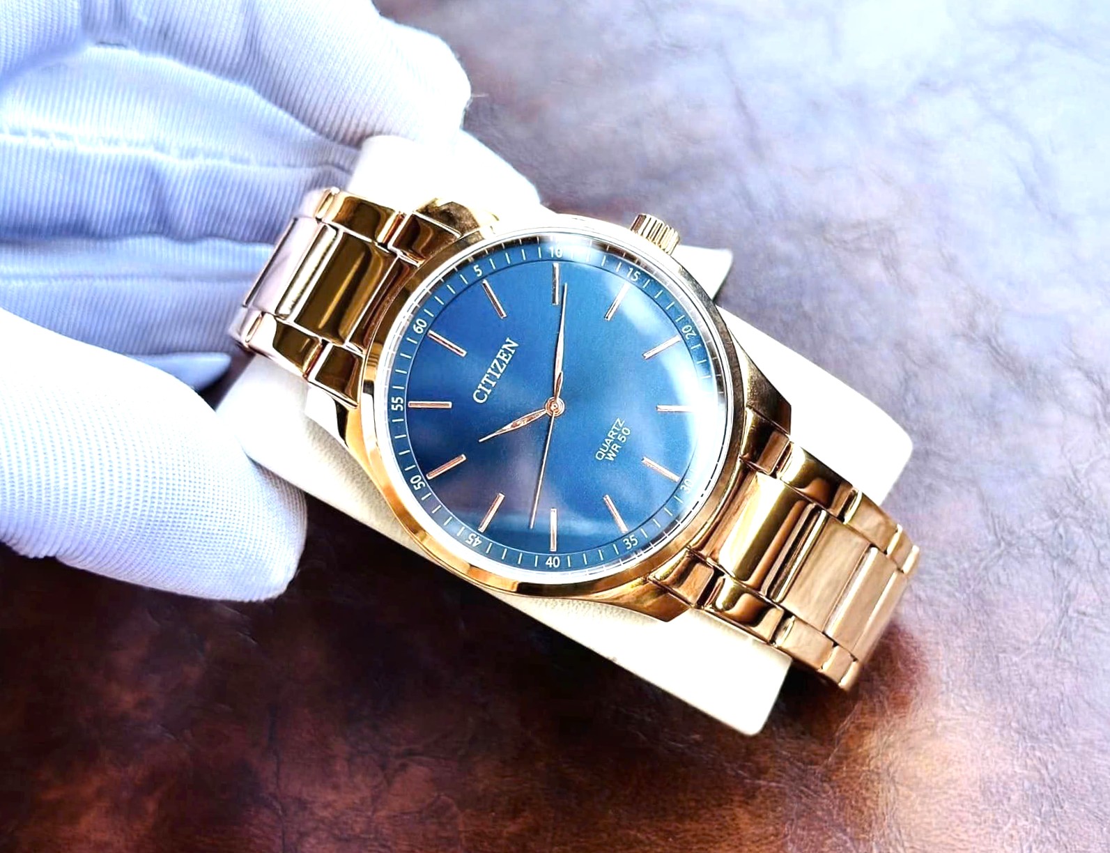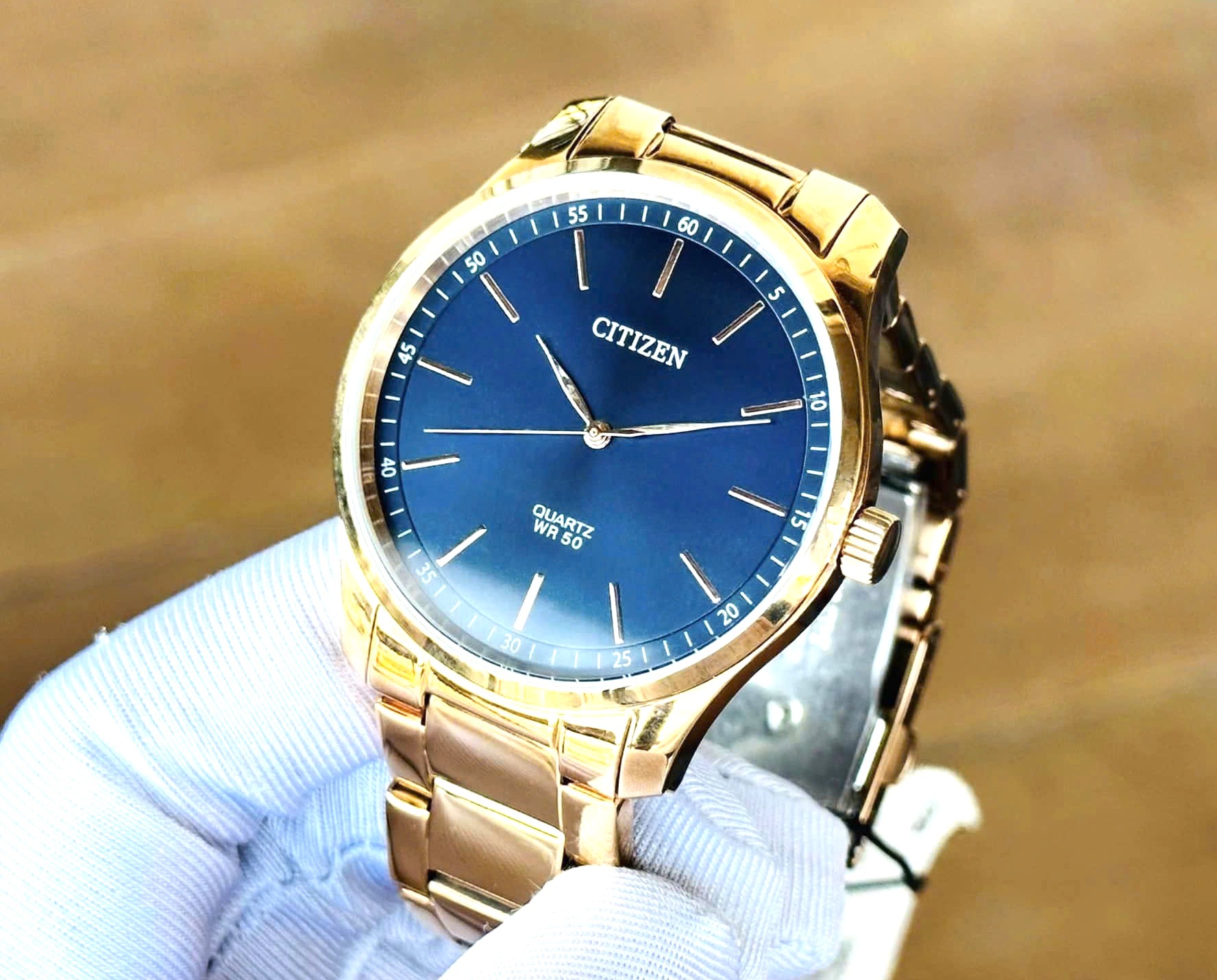ĐỒNG HỒ CITIZEN NAM DÂY KIM LOẠI 3 KIM BH5003-51L sử dụng bộ máy Nhật Bản chính hãng, kiểu dáng đồng hồ thời trang, dây, vỏ inox đúc nguyên khối mạ màu vàng hồng công nghệ PVD cao cấp không phai, mặt kính khoáng cứng chống va đập tốt. Đồng hồ 3 kim xem giờ truyền thống, độ chống nước 50M.