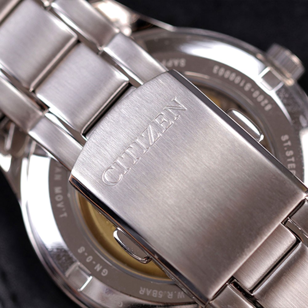ĐỒNG HỒ CITIZEN NAM NH7520-56E – AUTOMATIC – DÂY THÉP – KÍNH SAPPHIRE Thiết kế kiểu dáng thanh lịch, cổ điển nhưng không kém phần sang trọng phù hợp cho mọi lứa tuổi. Sử dụng bộ máy cơ (automatic) chính hãng CITIZEN độ bền cao và độ chính xác giờ gần như tuyệt đối. Độ chống nước 50M (5ATM), kính Sapphire, dây inox cung với chức năng lịch thứ và ngày thích hợp để sử dụng hàng ngày, trong mọi điều kiện.