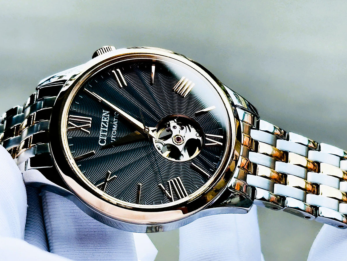 ĐỒNG HỒ CITIZEN NAM NH9136-88H AUTOMATIC (CƠ) OPEN HEART – DÂY ĐỜ MI – KÍNH SAPPHIRE – 5ATM – 40MM Thiết kế kiểu dáng thanh lịch, cổ điển nhưng không kém phần sang trọng phù hợp cho mọi lứa tuổi. Sử dụng bộ máy cơ (automatic) chính hãng CITIZEN độ bền cao và độ chính xác giờ gần như tuyệt đối. Độ chống nước 50M (5ATM).