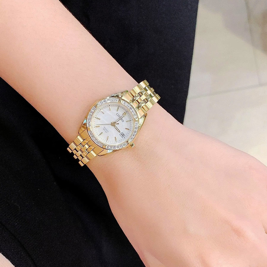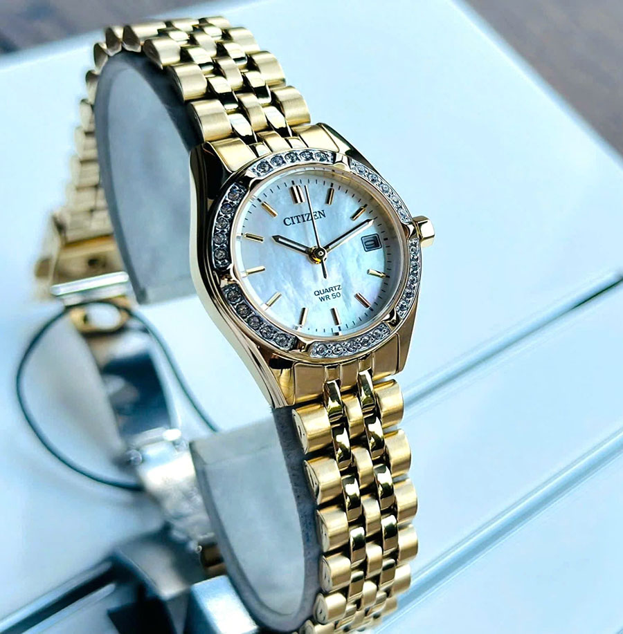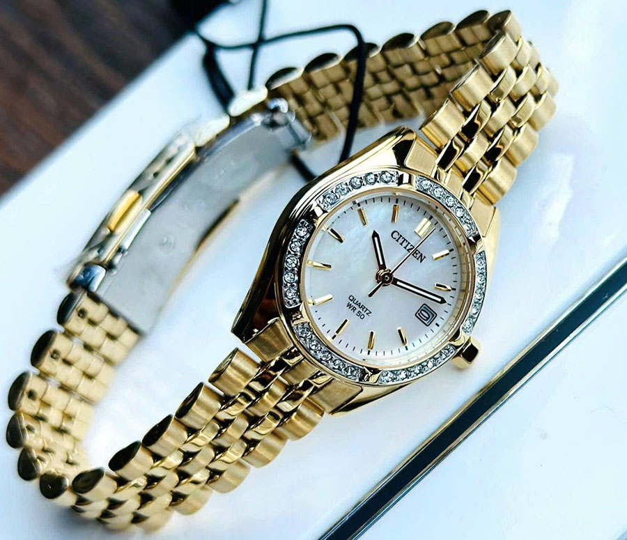 ĐỒNG HỒ CITIZEN NỮ EU6062-50D QUARTZ (PIN) – KÍNH KHOÁNG – DÂY VÀNG – 5ATM – 26MM
