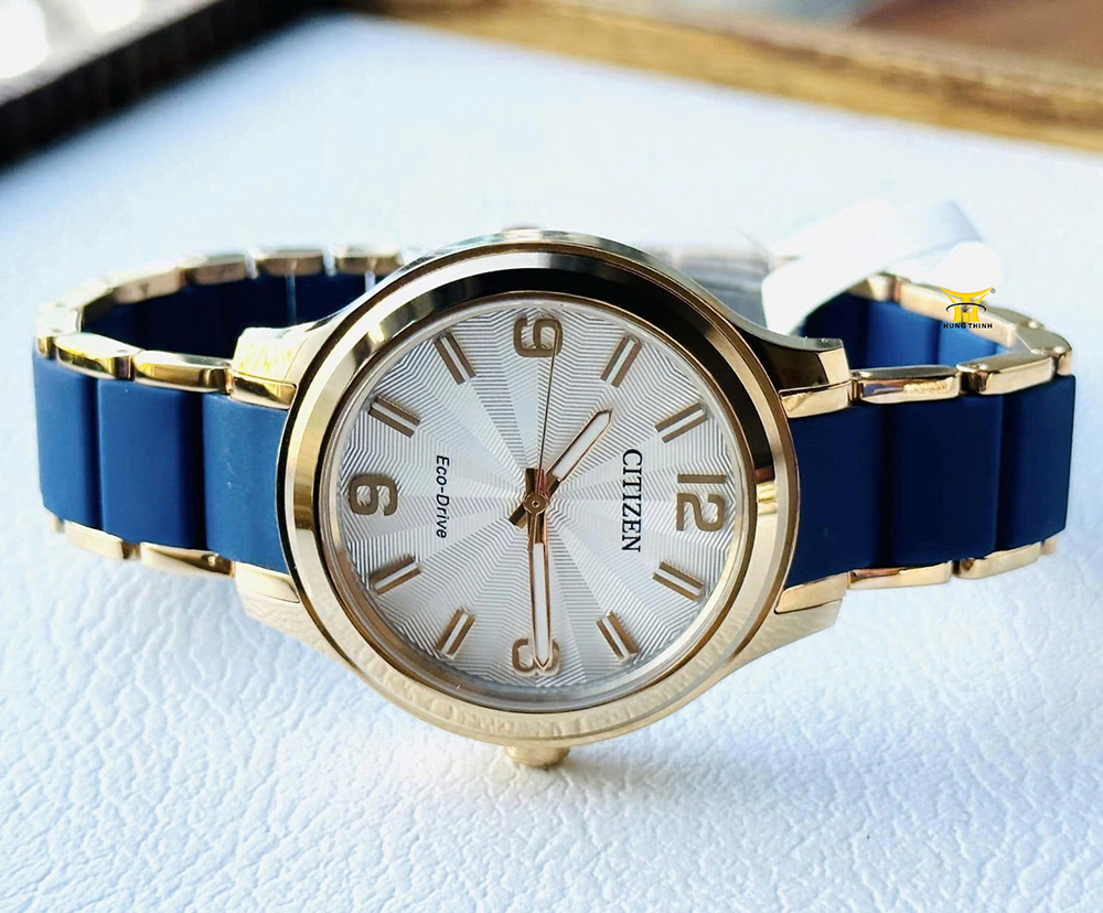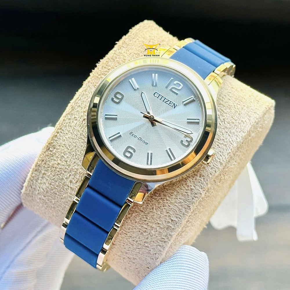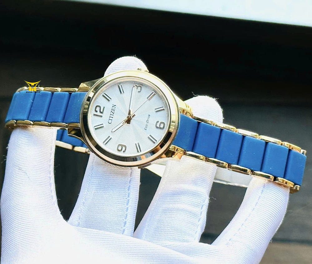 ĐỒNG HỒ CITIZEN NỮ FE7078-93A ECO-DRIVE (PIN NĂNG LƯỢNG) – KÍNH KHOÁNG – DÂY CAO SU – 10ATM – 36.8MM Thiết kế hiện đại, trẻ trung với 3 kim xem giờ truyền thống. Sử dụng bộ máy quartz với công nghệ pin năng lượng hấp thụ ánh sáng (công nghệ Eco-Drive) độc quyền từ hãng đồng hồ CITIZEN không cần phải thay pin trong suốt quá trình sử dụng, rất bền bỉ, dễ bảo quản.
