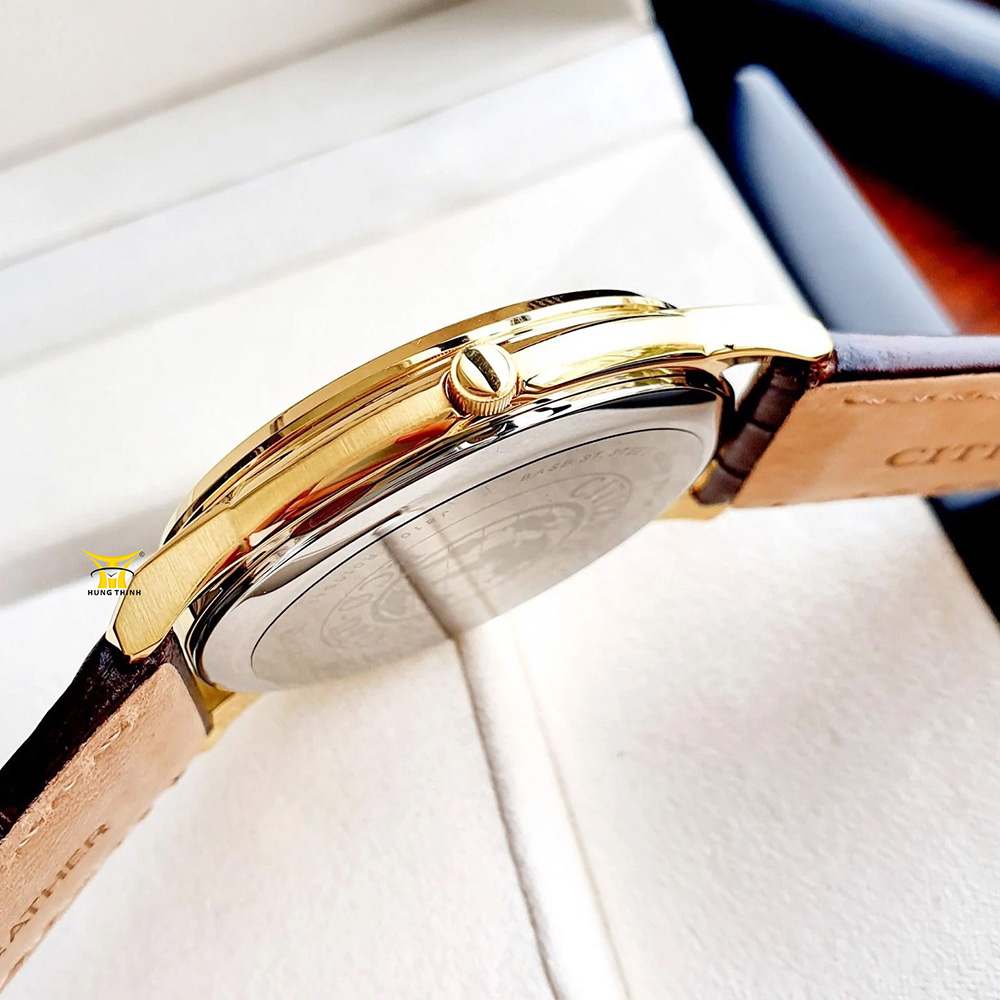 ĐỒNG HỒ CITIZEN – PIN NĂNG LƯỢNG – ECO-DRIVE – NAM – DÂY DA – 3 KIM – AW1212-10A Kiểu dáng đồng hồ thời trang, dây da cao cấp chính hãng 2 lớp chống thấm,vỏ inox đúc nguyên khối mạ màu vàng công nghệ PVD cao cấp không phai, mặt kính khoáng cứng chống va đập. Đồng hồ 3 kim xem giờ truyền thống và 1 lịch ngày.