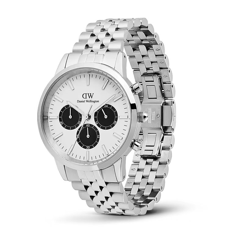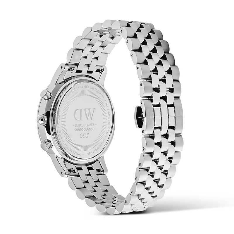 ĐỒNG HỒ DANIEL WELLINGTON (DW) Chronograph NAM DW00100872 – QUART (PIN) – KIM LOẠI – 5ATM – 42MM chính hãng. Thiết kế kiểu dáng thể thao Chronograph mới lạ, kết hợp giữa mặt số 6 kim, dây vỏ cùng sắc bạc trắng chủ đạo, cùng chức năng Chronograph màu đen nổi bật. Tạo nên sự sang trọng, tinh tế nhưng không kém phần mạnh mẽ cho các quý ông. Sử dụng bộ máy quartz chính hãng Nhật Bản rất bền bỉ, thời gian hoạt động của pin có thể lên đến 5 năm.