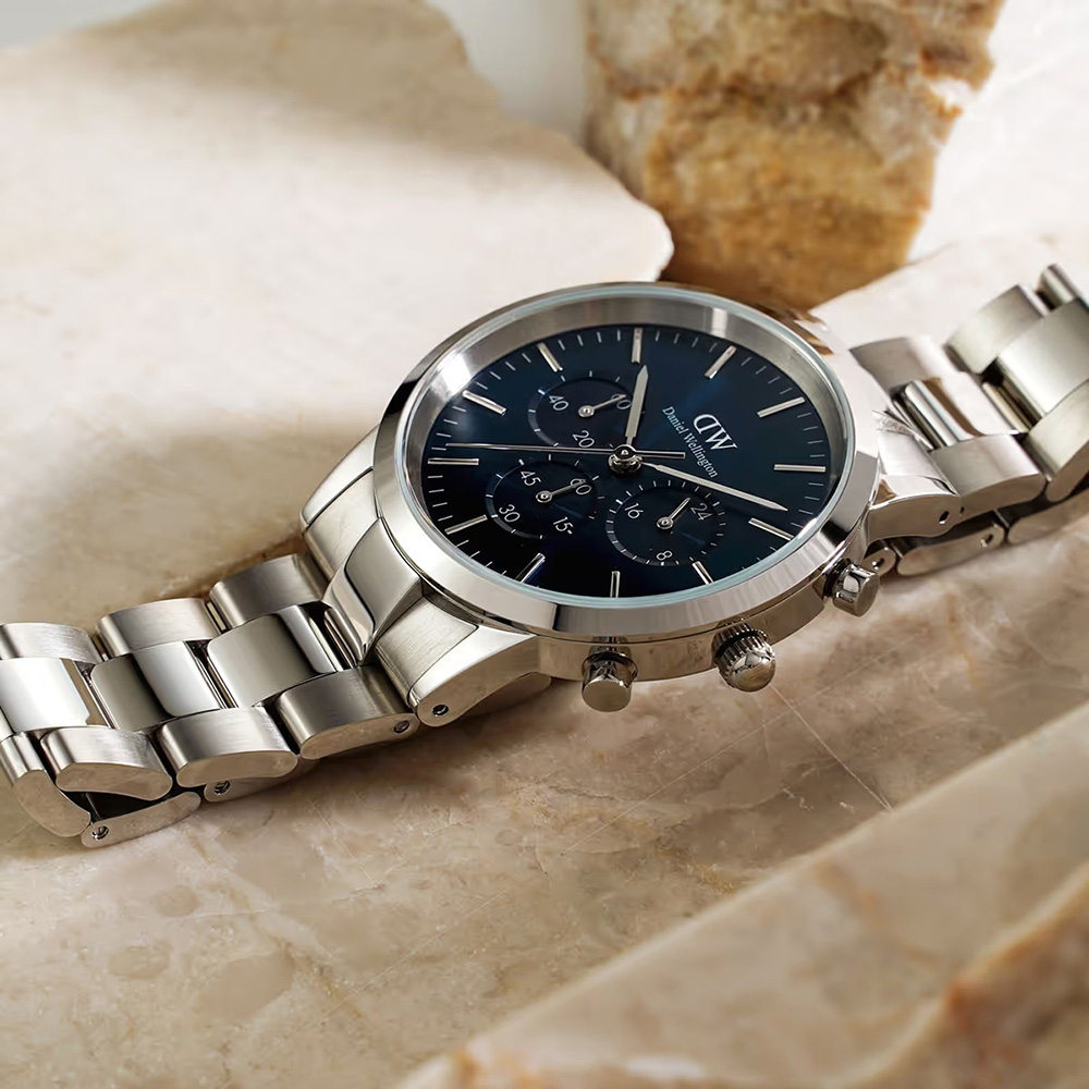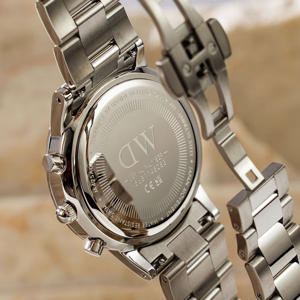 ĐỒNG HỒ DANIEL WELLINGTON (DW) ICONIC CHRONOGRAPH LINK ARCTIC S NAM – 3ATM – 42MM – DW00100644 Dành cho tín đồ của DW nhưng thích sự mới lạ, Daniel Wellington DW00100644 khác hoàn toàn so với ngôn ngữ thiết kế đơn giản truyền thống của hãng. Ở phiên bản này DW thiết kế kiểu dáng thể thao 6 kim được trang bị thêm tính năng bấm giờ thể thao Chronograph đi cùng ngoại diện sang trọng và mạnh mẽ với 3 nút bấm hứa hẹn sẽ khuấy đảo thị trường đồng hồ. Sử dụng bộ máy quartz chính hãng Nhật Bản rất bền bỉ, thời gian hoạt động của pin có thể lên đến 5 năm.