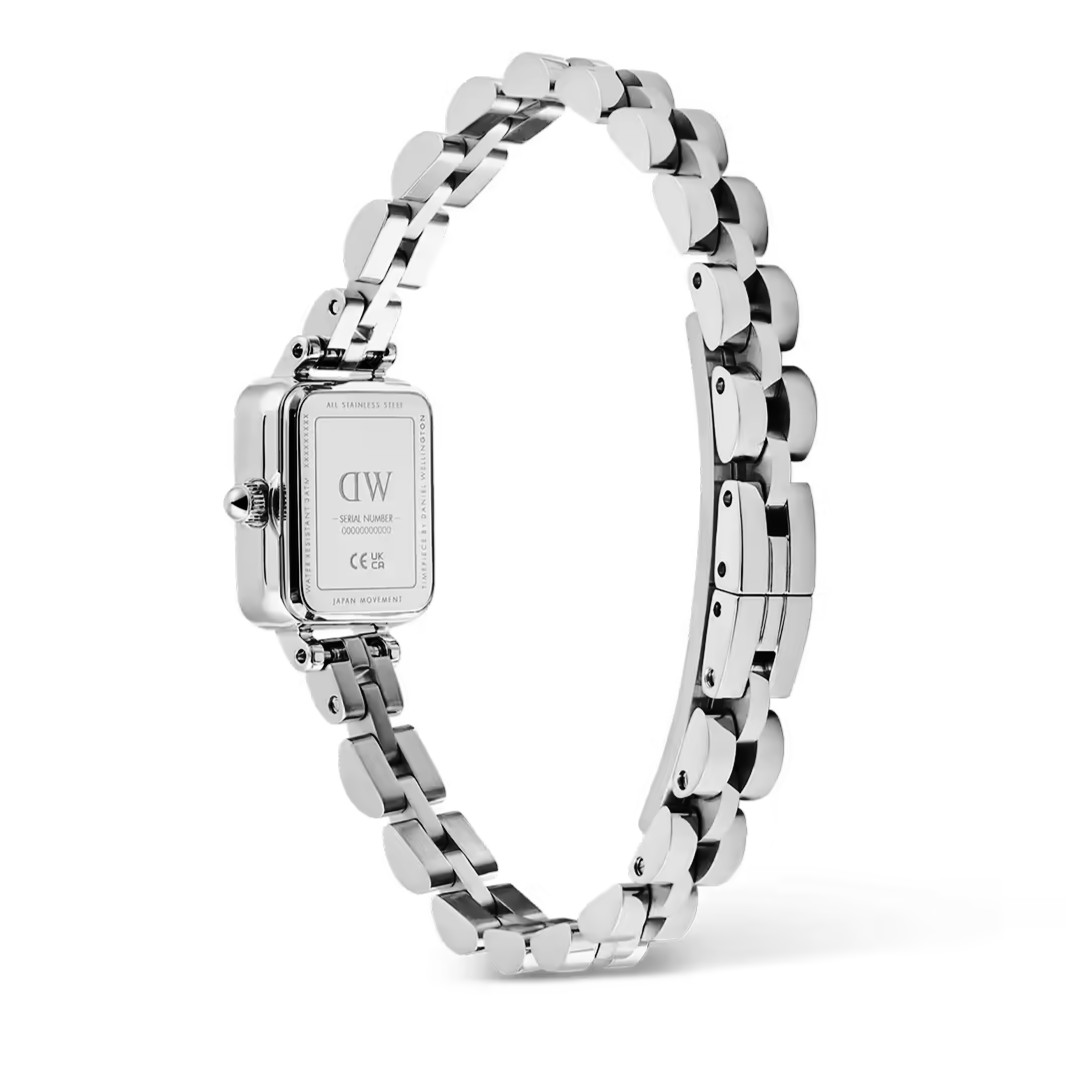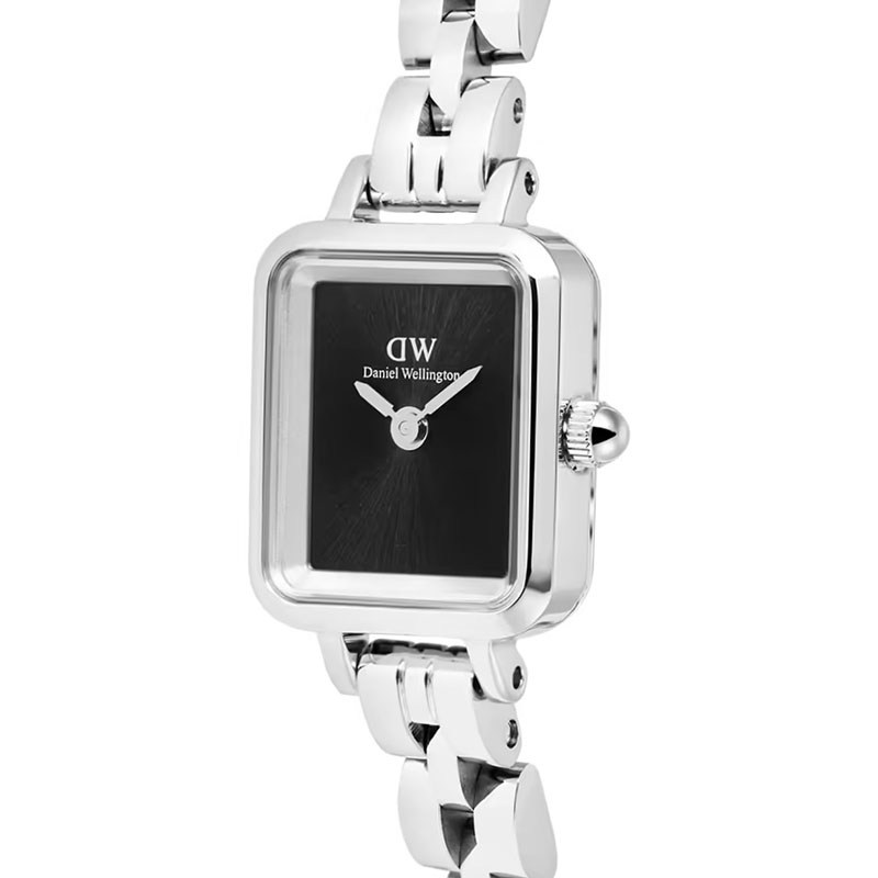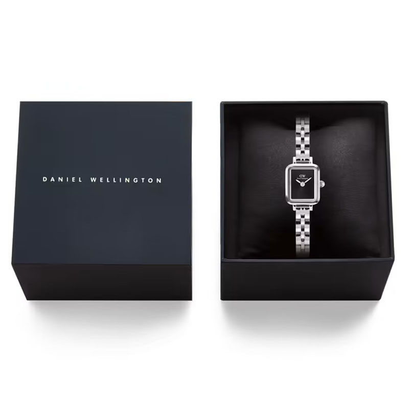 ĐỒNG HỒ DANIEL WELLINGTON (DW) Quadro Mini NỮ DW00100845 – QUART (PIN) – DÂY KIM LOẠI – 15.4×18.2MM chính hãng. Sở hữu mặt hình chữ nhật mới lạ độc đáo, kết hợp giữa mặt số tối giản màu đen huyền bí, dây vỏ cùng sắc bạc trắng chủ đạo, tạo nên sự sang trọng, tinh tế cho các quý cô. Sử dụng bộ máy quartz chính hãng Nhật Bản rất bền bỉ, thời gian hoạt động của pin có thể lên đến 5 năm.