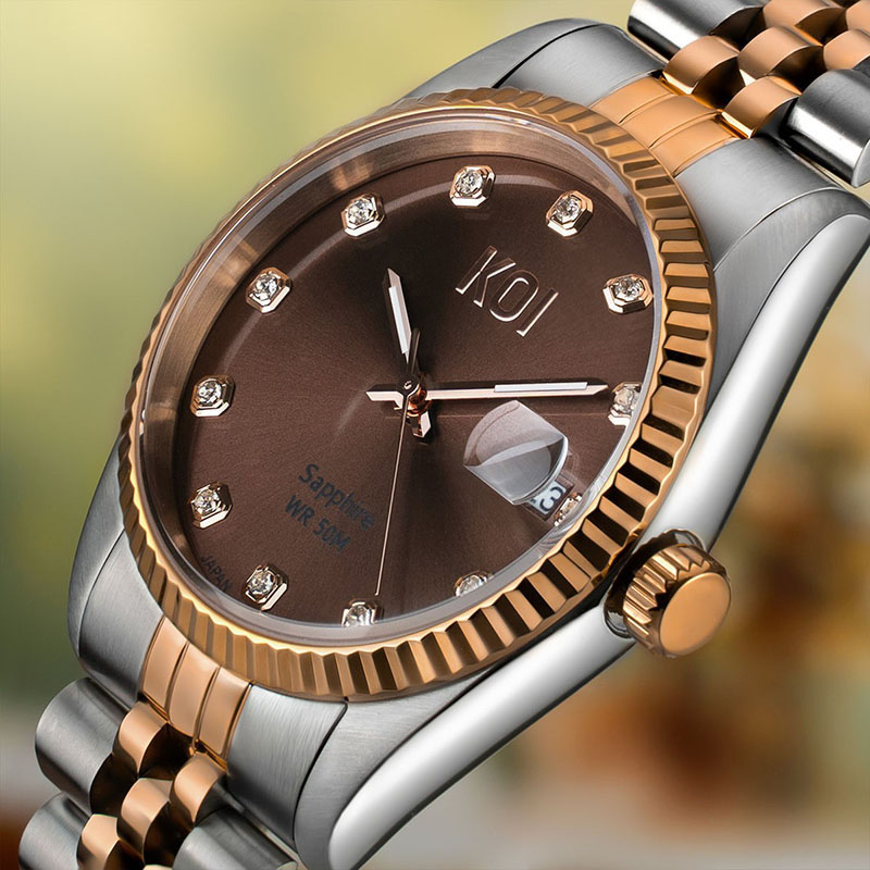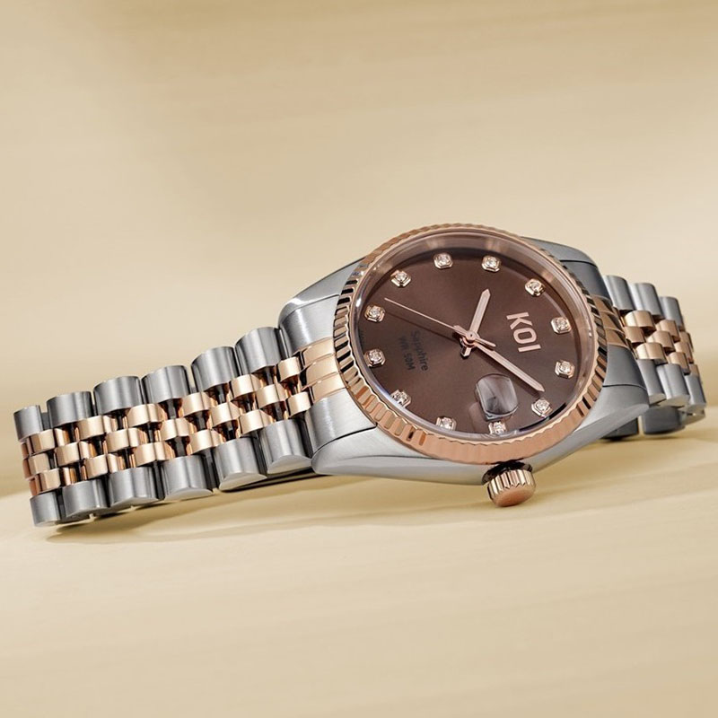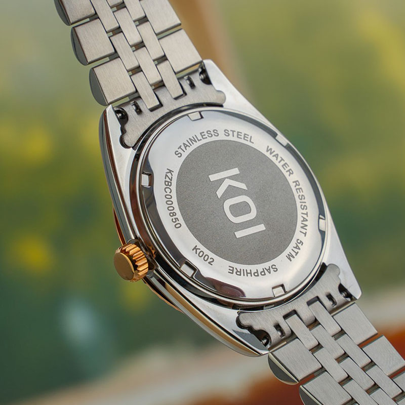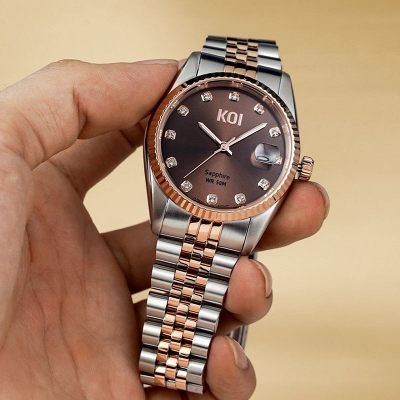 ĐỒNG HỒ KOI NAM K002.403.641.51.03.04 – SWISS QUARTZ – DÂY ĐỜ MI – SAPPHIRE – 5ATM – 38MM Sử dụng bộ máy Ronda Thụy Sỹ chính hãng mang đến độ bền cao và ổn định. Kiểu dáng đồng hồ thời trang với dây kim loại mạ vàng hồng đờ mi theo công nghệ cao PVD không phai, phối cùng lớp sơn mài ấn tượng trên nền số, viền khứa ren cưa và vạch số được đính đá lấp lánh, sang trọng. Mặt kính sapphire chống trầy xước cùng với tiêu chuẩn chống nước 5ATM đảm bảo mang đến sự an tâm cho người đeo.
