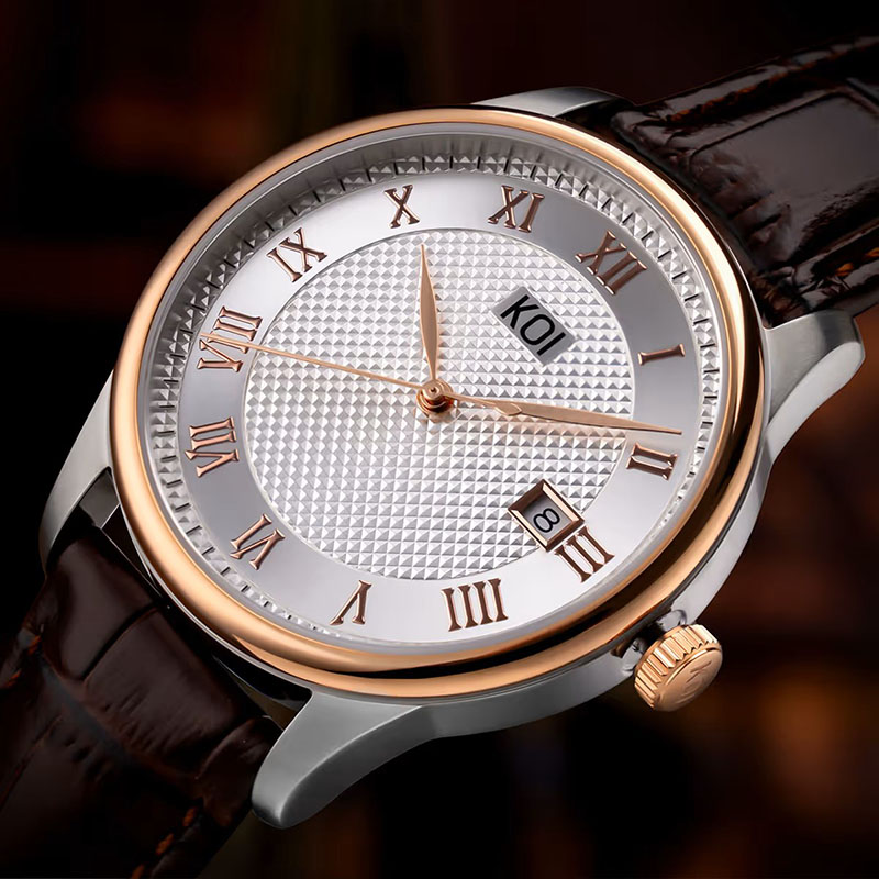 ĐỒNG HỒ KOI NAM K003.452.642.29.03.03 – SWISS QUARTZ – DÂY DA – SAPPHIRE – 5ATM – 39.5MM Sử dụng bộ máy Ronda Thụy Sỹ pin chính hãng mang đến độ bền cao và ổn định. Kiểu dáng đồng hồ thời trang với dây da phối cùng vỏ đờ mi màu vàng hồng mạ PVD không phai màu, vạch số la mã sang trọng. Mặt kính sapphire chống trầy xước cùng với tiêu chuẩn chống nước 5ATM đảm bảo mang đến sự an tâm cho người đeo.
