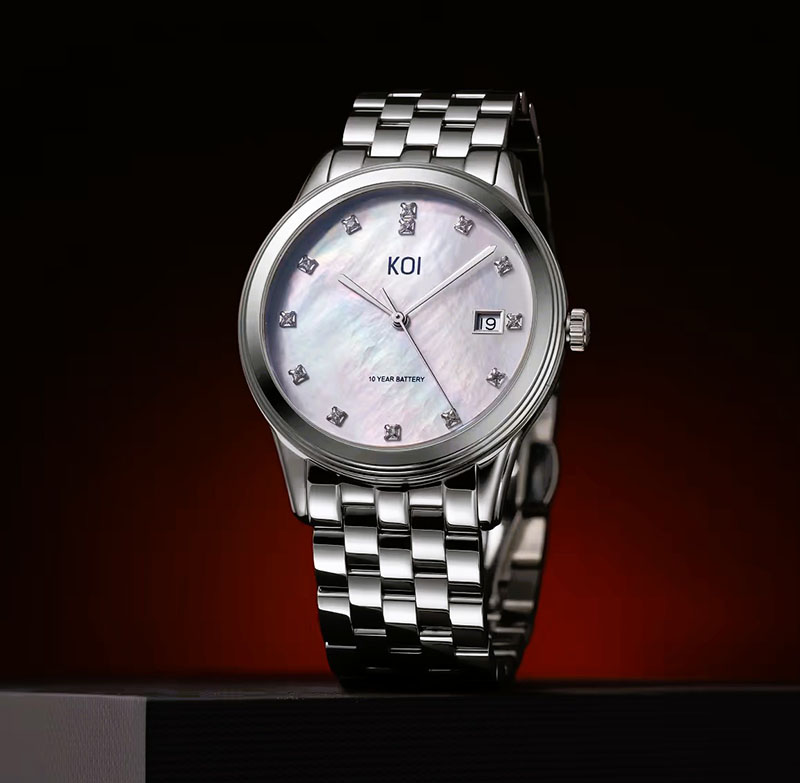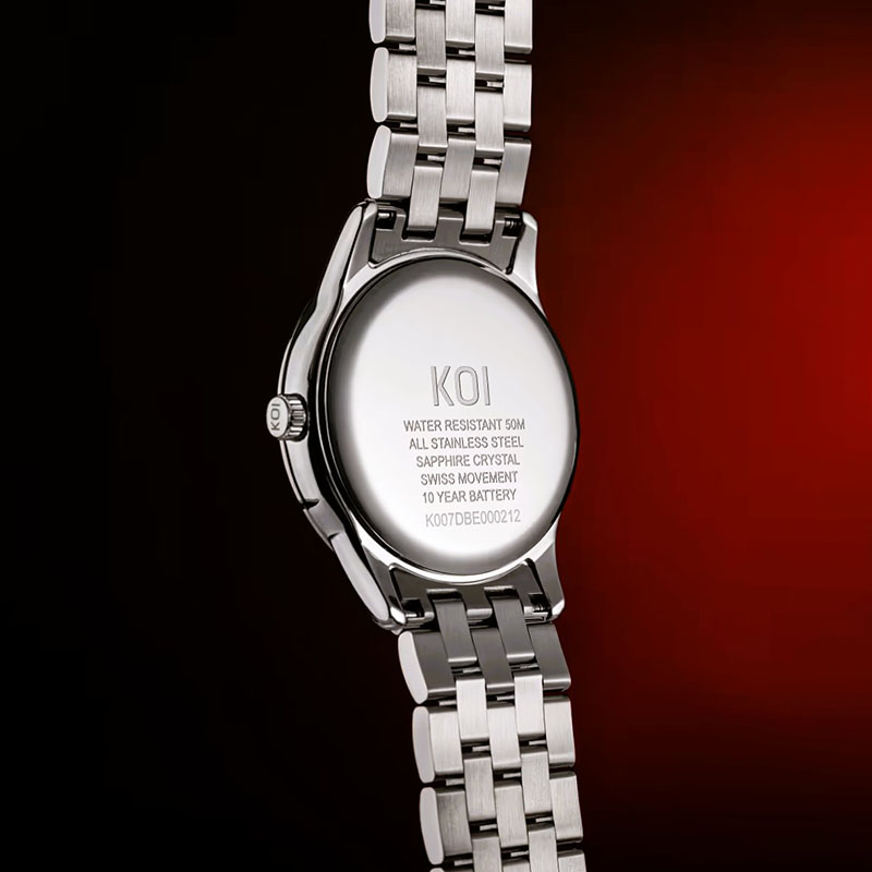 ĐỒNG HỒ KOI NAM K007.136.09.03.50.11.04 – SWISS QUARTZ PIN 10 NĂM – DÂY KIM LOẠI – SAPPHIRE – 5ATM – 38.5MM Sử dụng bộ máy Ronda Thụy Sỹ pin 10 năm chính hãng mang đến độ bền cao và ổn định. Kiểu dáng đồng hồ thời trang với dây kim loại phối hợp cùng mặt số khảm xà cừ, vạch số được đính đá lấp lánh, sang trọng. Mặt kính sapphire chống trầy xước cùng với tiêu chuẩn chống nước 5ATM đảm bảo mang đến sự an tâm cho người đeo.