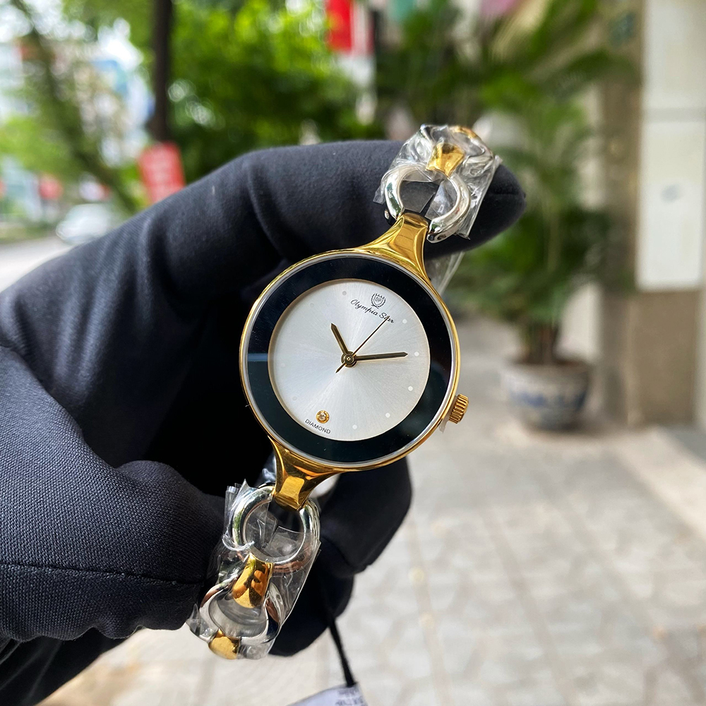 ĐỒNG HỒ OLYMPIA STAR DÂY KIM LOẠI NỮ 3 KIM OPA28030LSK-T dây, vỏ inox (Steel) mạ màu vàng (đờ mi) công nghệ PVD cao cấp không phai, mặt kính sapphire chống trầy xước, khả năng chịu nước ở 30M.