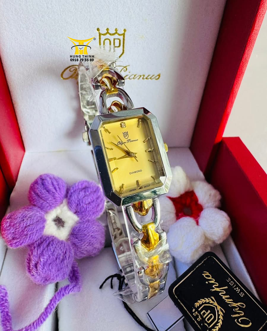 ĐỒNG HỒ OP (OLYM PIANUS) NỮ OP2462LSK-V QUARTZ (PIN) – DÂY LẮC – KÍNH SAPPHIRE – 3ATM – 19.4MM Thiết kế kiểu dáng đồng hồ thời trang, nữ tính với dây dạng lắc kết hợp cùng mặt số đơn giản đính 1 viên kim cương ngay vị trí 12h làm nổi bật sự sang trọng. Mặt kính sapphire nguyên khối chống trầy xước.
