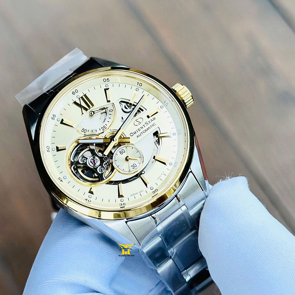 ĐỒNG HỒ ORIENT STAR CONTEMPORARY MODERN SKELETON NAM RE-AV0124G00B – AUTOMATIC không chỉ là công cụ đo thời gian, mà còn là một tác phẩm nghệ thuật trên cổ tay. Với thiết kế mặt số lộ cơ độc đáo được ví như nụ cười của “Joker”, chất lượng vượt trội và phong cách hiện đại, mẫu đồng hồ này sẽ nâng tầm đẳng cấp của bạn. Sử dụng công nghệ máy tự động Nhật Bản Cal.F6F44 chính hãng hoàn toàn mới (Made in Japan) hỗ trợ lên dây cót bằng tay, thời gian hoạt động dự trữ khi không sử dụng lên đến 50 giờ. Dây đeo và vỏ được chế tác bằng inox (Steel) 316L cao cấp, viền mạ màu vàng hồng, kính sapphire chống trầy, tạo nên vẻ ngoài thanh lịch và hiện đại, thu hút mọi ánh nhìn bởi sự tinh tế và phức tạp của bộ máy bên trong.