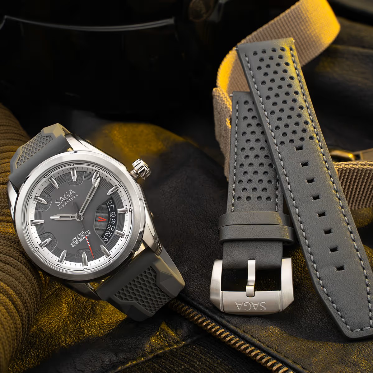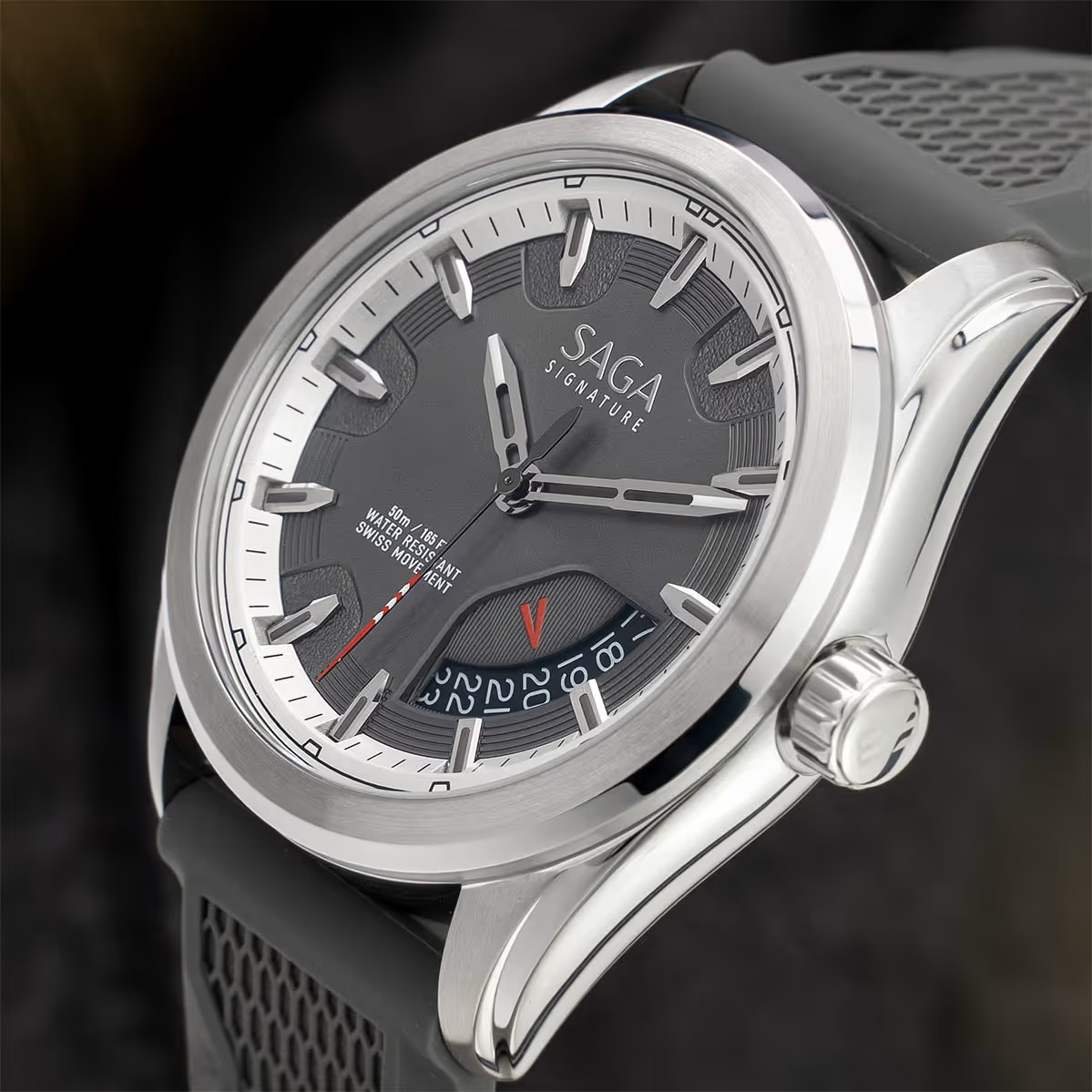ĐỒNG HỒ SAGA – NAM – QUARTZ (PIN) – KÍNH SAPPHIRE – 5ATM- 42MM – 13568-SVGEPUG-2 Thiết kế dây đeo bằng silicon mang phong cách thể thao và chắc chắn. Sử dụng bộ máy quartz (pin) Ronda Swiss Made Thụy Sỹ chính hãng với năng lượng pin sử dụng lên đến 3 năm. Độ chống nước 50M (5ATM).