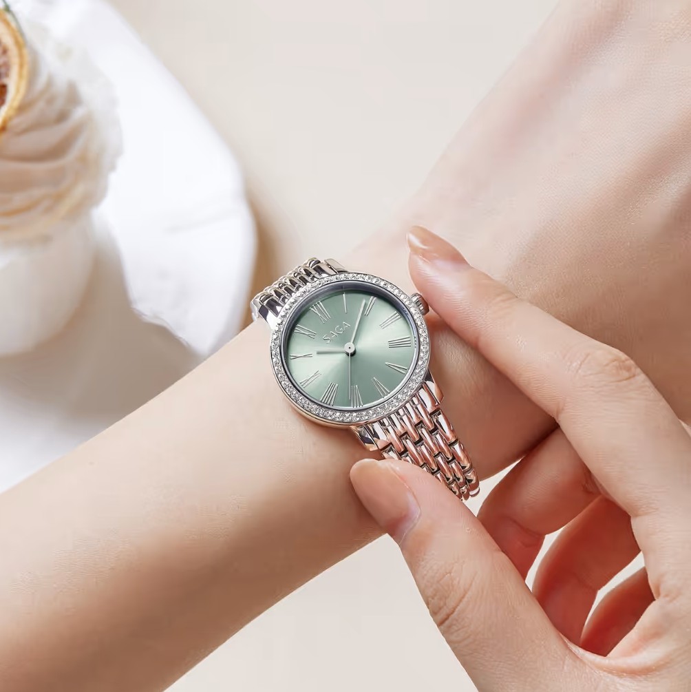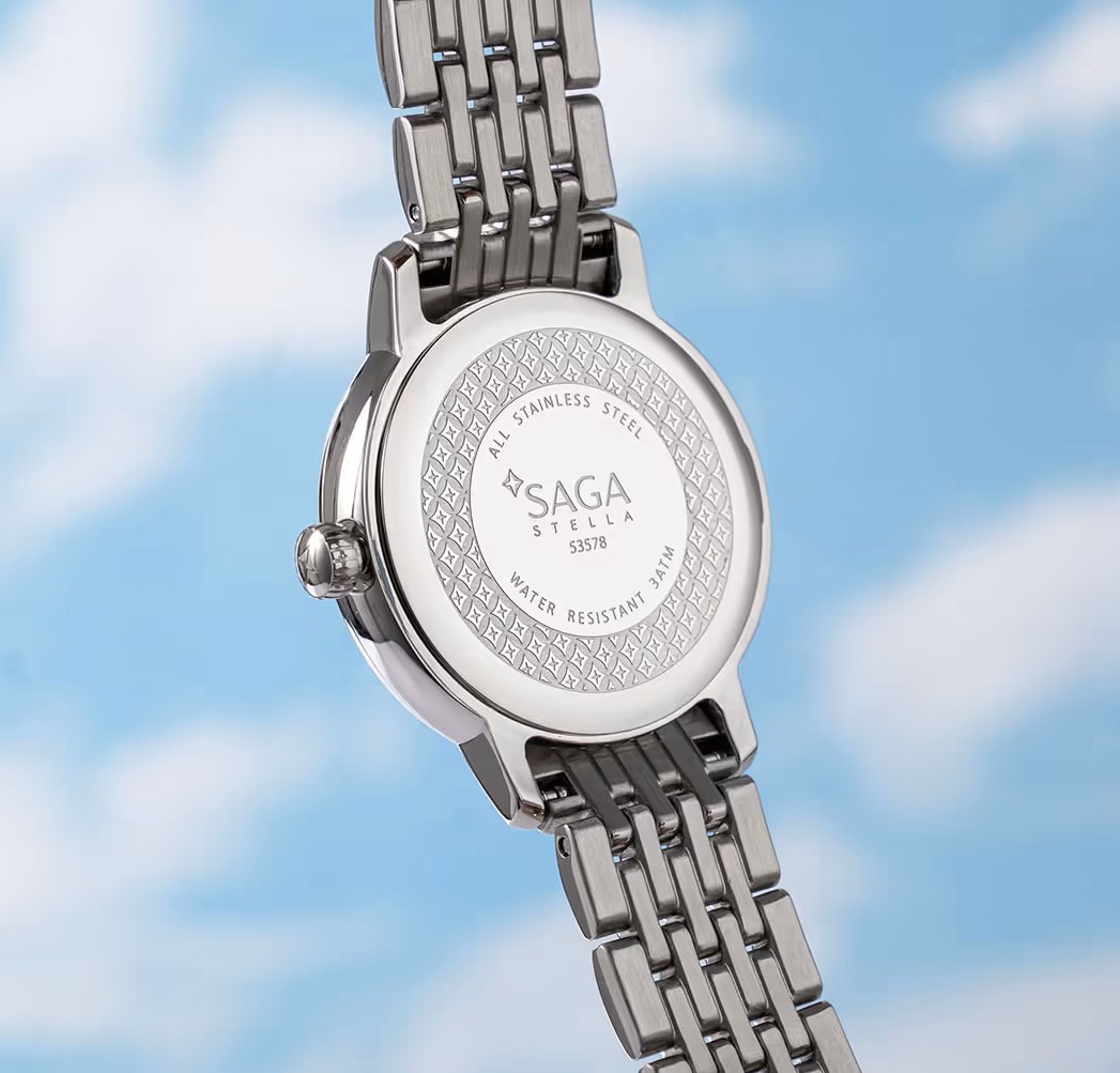 ĐỒNG HỒ SAGA – STELLA CHANCE – QUARTZ (PIN) – NỮ – KÍNH KHOÁNG – 30MM – 53578-SVGRSV-2 mang trong mình một vẻ đẹp hiện đại, nữ tính trong từng chi tiết, có thể nói đây là một mẫu đồng hồ được ra đời nhằm mục đích chinh phục mọi trái tim của chị em phụ nữ. Sử dụng bộ máy quartz với năng lượng pin sử dụng lên đến 3 năm. Độ chống nước 30M (3ATM). Điểm nhấn của chiếc đồng hồ chính hãng Saga 53578-SVGRSV-2chính là viền đồng hồ được đính đá tự nhiên cao cấp rất sang trọng.