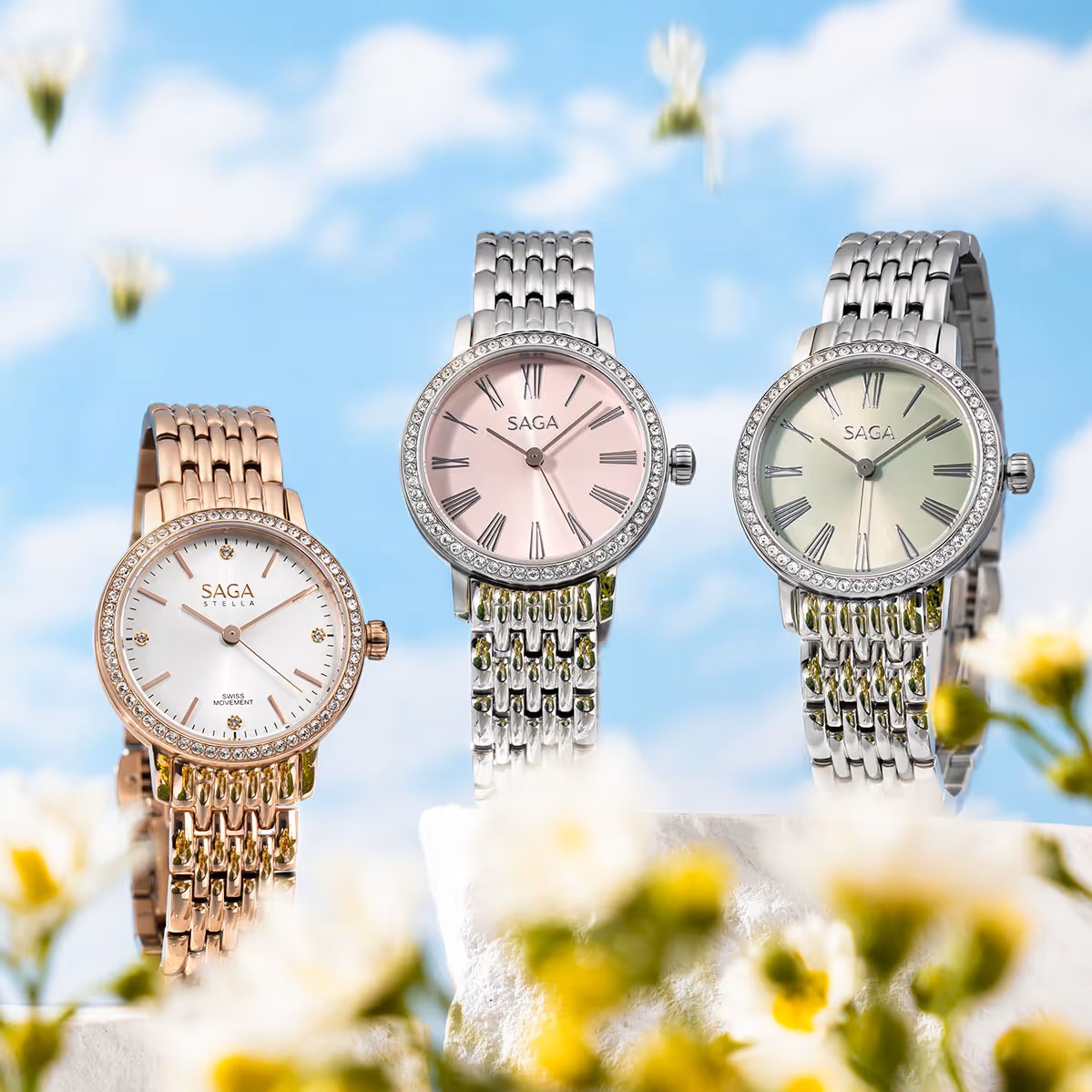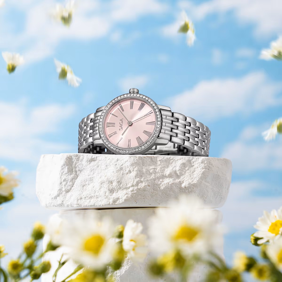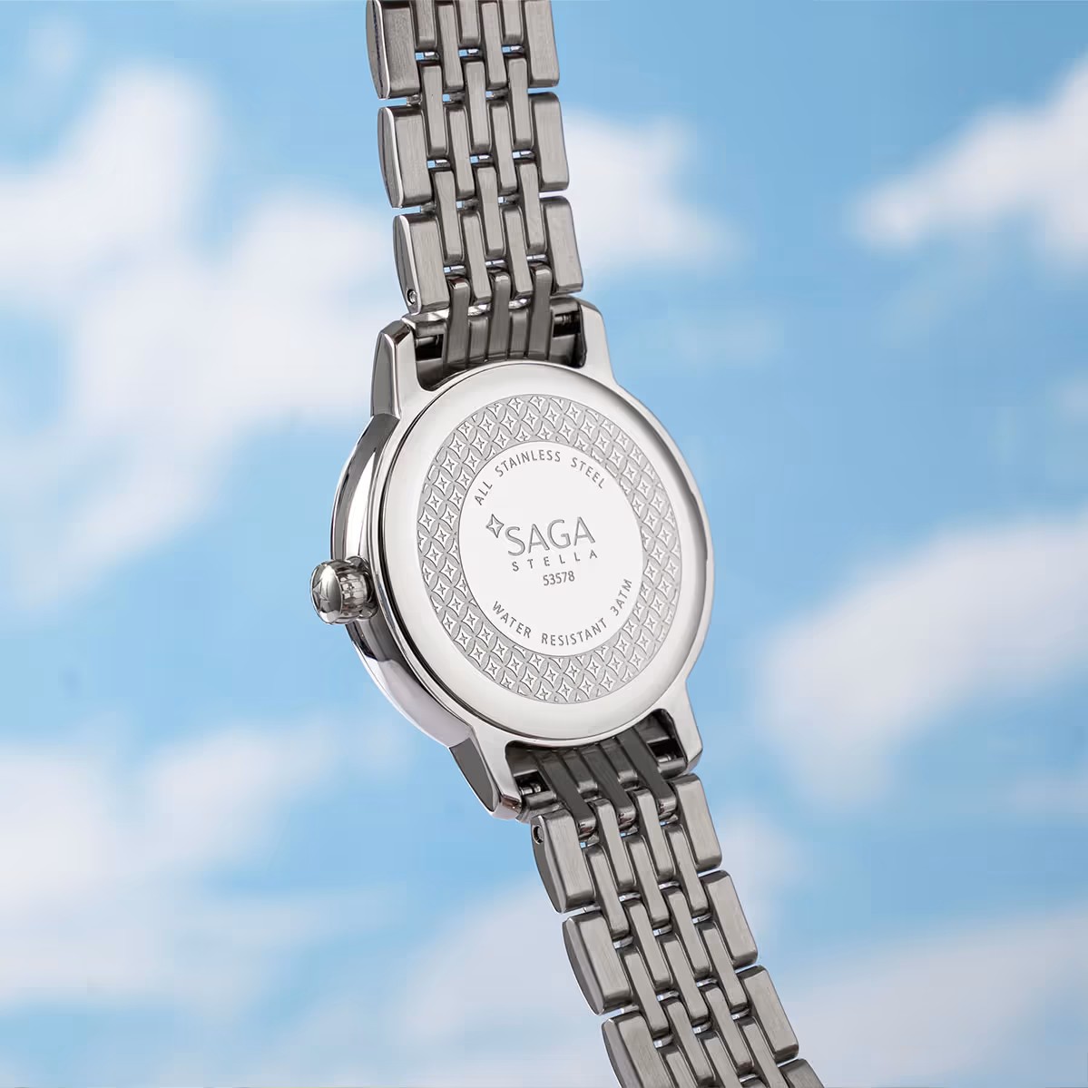 ĐỒNG HỒ SAGA – STELLA CHANCE – QUARTZ (PIN) – NỮ – KÍNH KHOÁNG – 30MM – 53578-SVPKSV-2 mang trong mình một vẻ đẹp hiện đại, nữ tính trong từng chi tiết, có thể nói đây là một mẫu đồng hồ được ra đời nhằm mục đích chinh phục mọi trái tim của chị em phụ nữ. Sử dụng bộ máy quartz với năng lượng pin sử dụng lên đến 3 năm. Độ chống nước 30M (3ATM). Điểm nhấn của chiếc đồng hồ chính hãng Saga 53578-SVPKSV-2 chính là viền đồng hồ được đính đá tự nhiên cao cấp rất sang trọng.