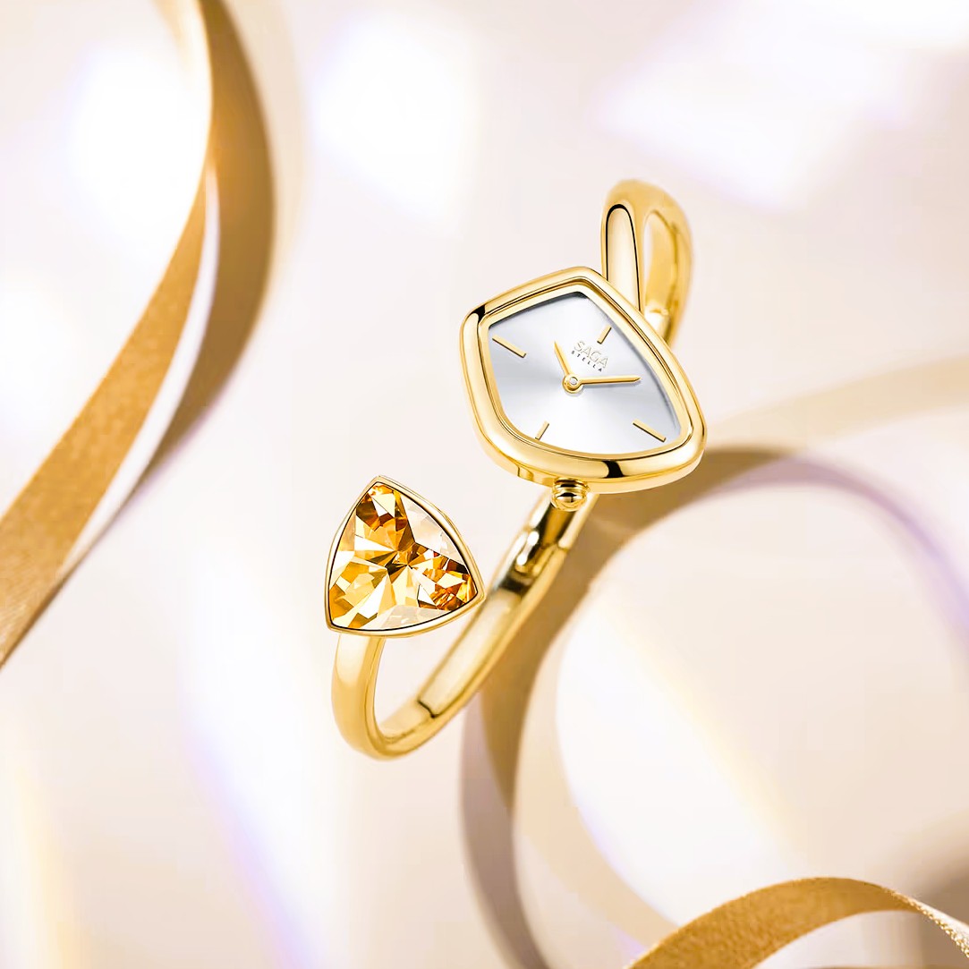 ĐỒNG HỒ SAGA STELLA – ĐÁ DANUBE – NỮ – KÍNH KHOÁNG – 3ATM – 24MM – 71903-GPWTGP-2AS Đồng hồ kiểu lắc tay với mặt số thiết kế hình khối đẹp mắt. Đặc biệt là sự kết hợp với một viên đá Danube to tạo nên thiết kế thời trang cho phái đẹp. Sử dụng bộ máy quartz (pin) Thụy Sỹ chính hãng (Ronda Swiss Made) với năng lượng pin có thể sử dụng lên đến 3 năm. Độ chống nước 30M (3ATM).