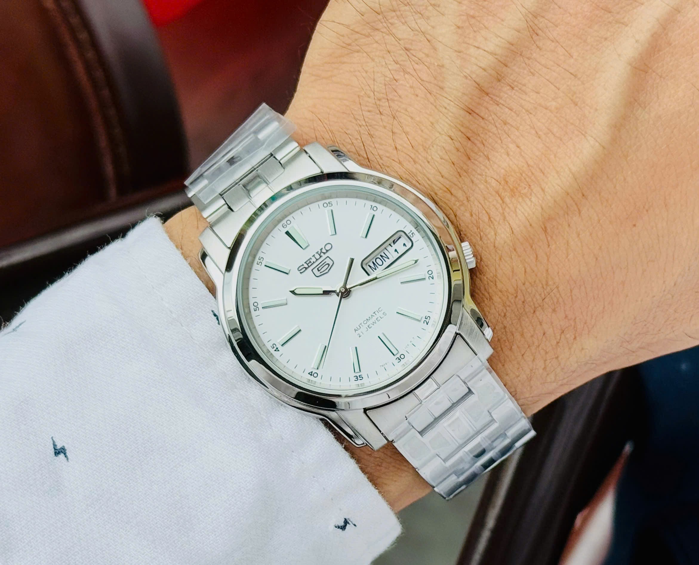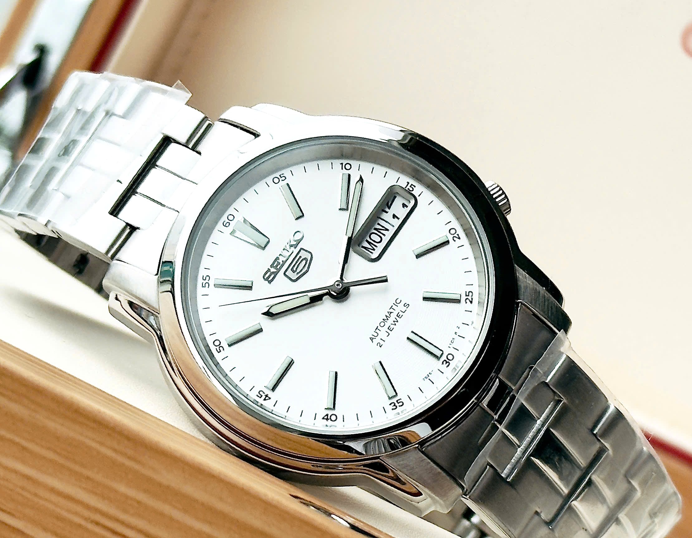 Đồng hồ nam SNKL75K1 chính hãng SEIKO, sử dụng bộ máy Caliber 7S26 (21 chân kính) chính hãng Nhật Bản, dây và vỏ bằng inox, mặt kính Hardlex crystal độc quyền nhà Seiko, khả năng chịu nước dưới áp xuất 50M. Kiểu dáng đồng hồ thời trang, mặt số màu trắng luôn có một sức hấp dẫn, lôi cuốn và vô cùng chắc chắn. Ba kim xem giờ truyền thống và 2 lịch ngày và thứ.