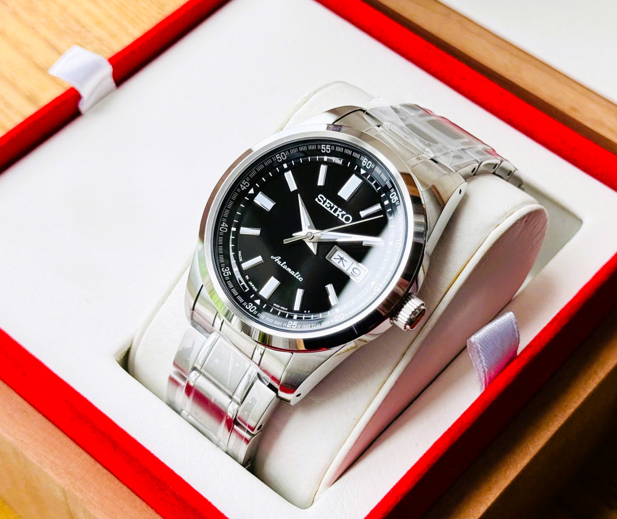 Đồng hồ nam SARV003 chính hãng SEIKO, sử dụng bộ máy Caliber 4R36 (24 chân kính) chính hãng Nhật Bản, dây và vỏ bằng inox, mặt kính cường lực Hardlex độc quyền nhà Seiko, khả năng chịu nước dưới áp suất 100M. Kiểu dáng đồng hồ thời trang, mặt số màu tđen luôn có một sức hấp dẫn, lôi cuốn và vô cùng chắc chắn. Ba kim xem giờ truyền thống và 2 lịch ngày và thứ.
