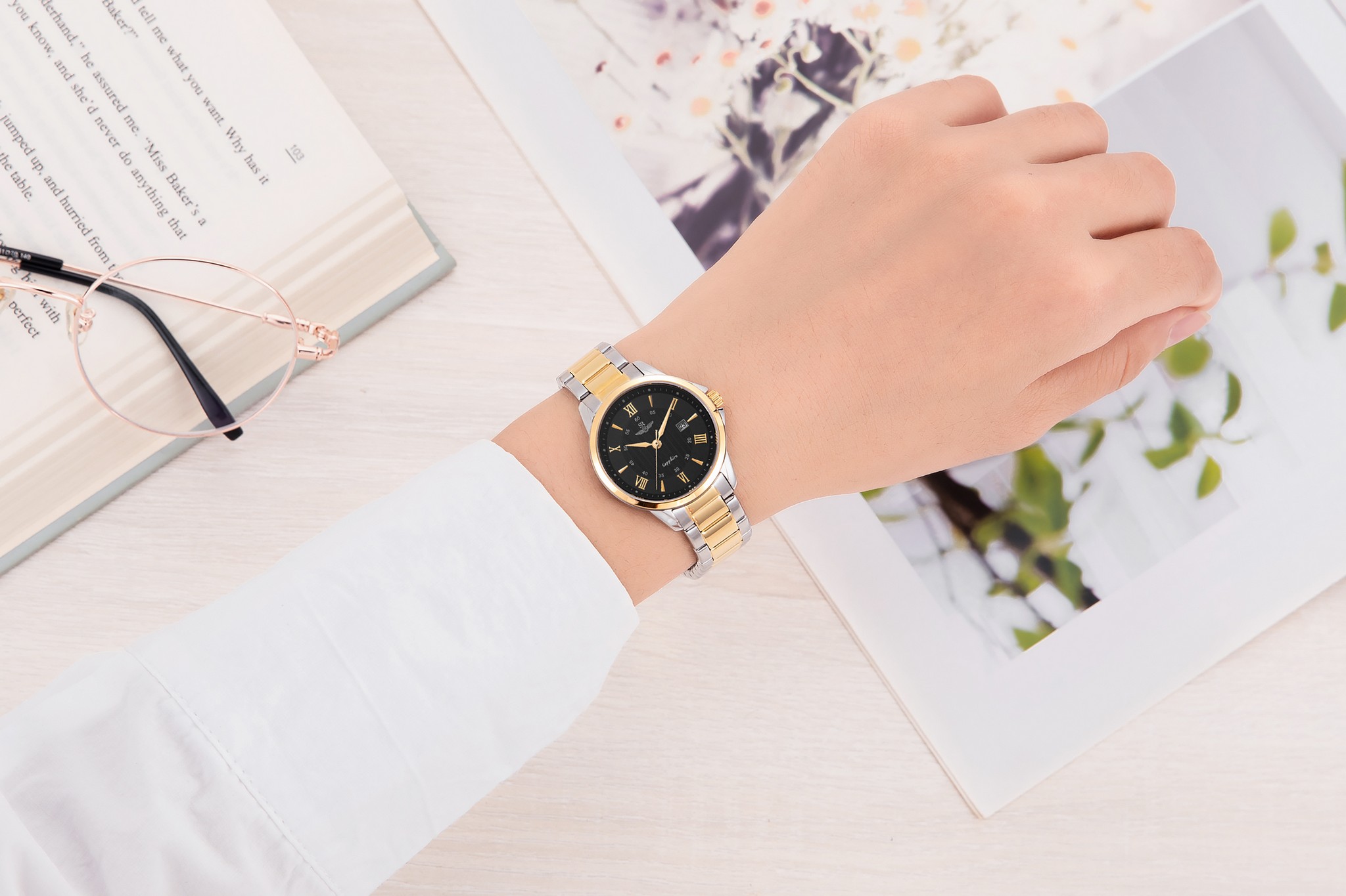 ĐỒNG HỒ SR NỮ DÂY KIM LOẠI 3 KIM SL3006.1201CV sử dụng bộ máy Nhật Bản chính hãng, kiểu dáng đồng hồ thời trang, dây, vỏ inox đúc mạ màu vàng (đờ mi) công nghệ PVD không phai, mặt kính sapphire chống trầy xước. Đồng hồ 3 kim xem giờ truyền thống và 1 lịch ngày. Khả năng chịu nước 50M.