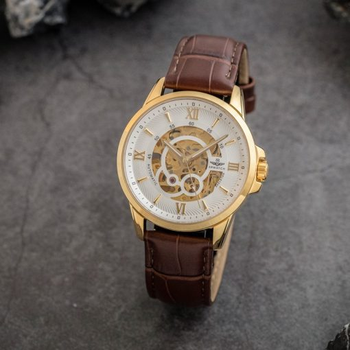 ĐỒNG HỒ SRWATCH AUTOMATIC SKELETON DÂY DA NAM 3 KIM SG8893.4602 nằm trong bộ sưu tập Skeleton với thiết kế ấn tượng lộ rõ bộ máy khung tự động đầy mê hoặc. SR Skeleton sử dụng bộ máy Miyota 8N24 có bộ cót trữ giờ lên đến 40 tiếng để có thể hoạt động khi không đeo trên tay, vỏ inox đúc mạ màu vàng công nghệ PVD cao cấp, kính sapphire nguyên khối chống trầy xước, độ chống nước 5 ATM.