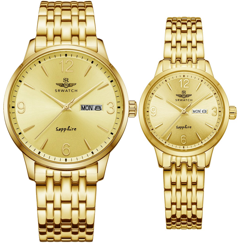 ĐỒNG HỒ SRWATCH – CẶP ĐÔI – QUARTZ (PIN) – DÂY KIM LOẠI – SG1903.1407TE VÀ SL1903.1407TE sử dụng bộ máy Nhật Bản chính hãng. Kiểu dáng đồng hồ thời trang, mặt kính sapphire chống trầy xước. Dây, vỏ inox đúc nguyên khối mạ màu vàng công nghệ PVD không phai.