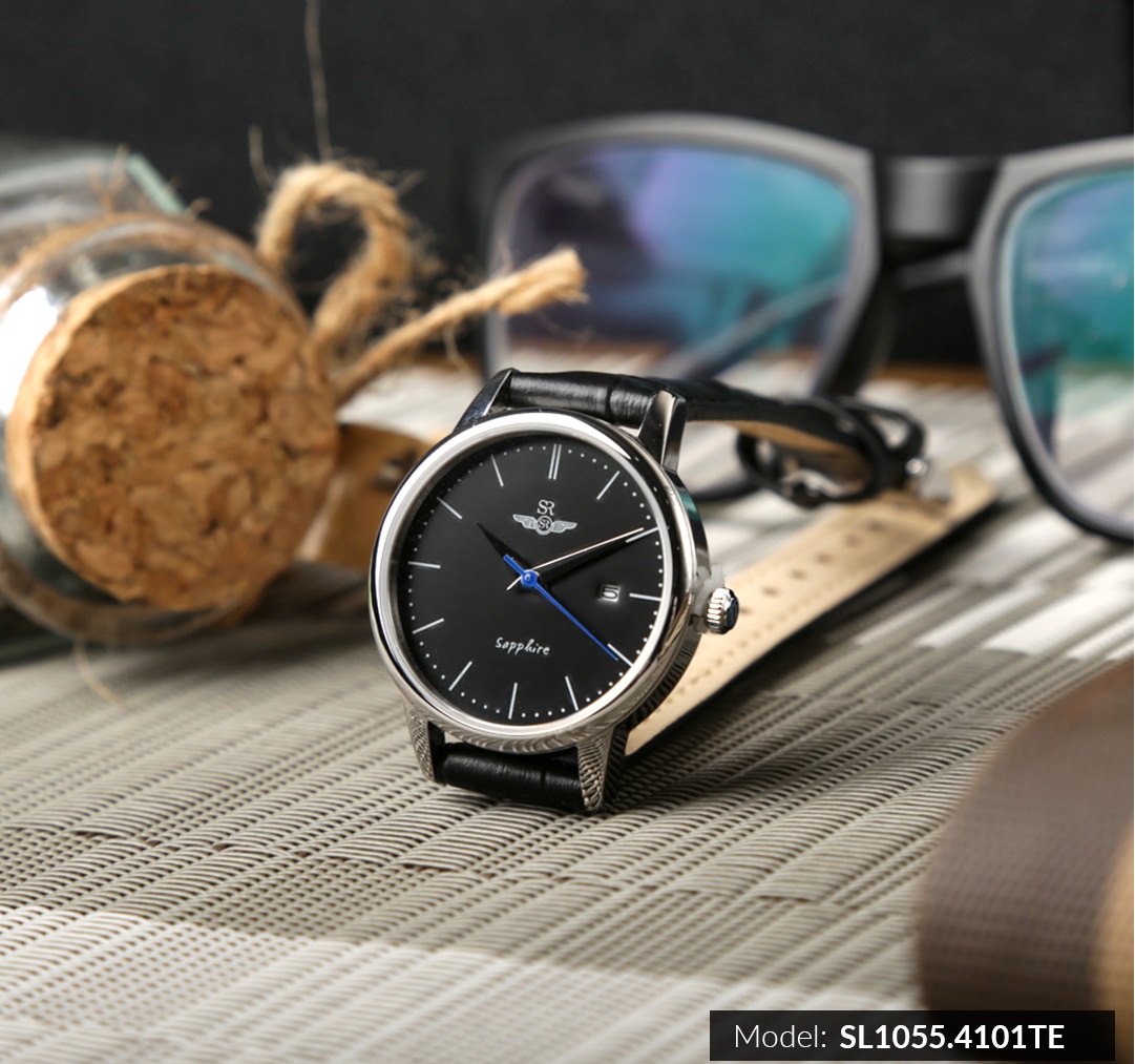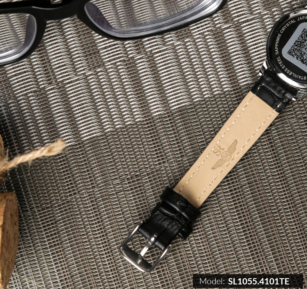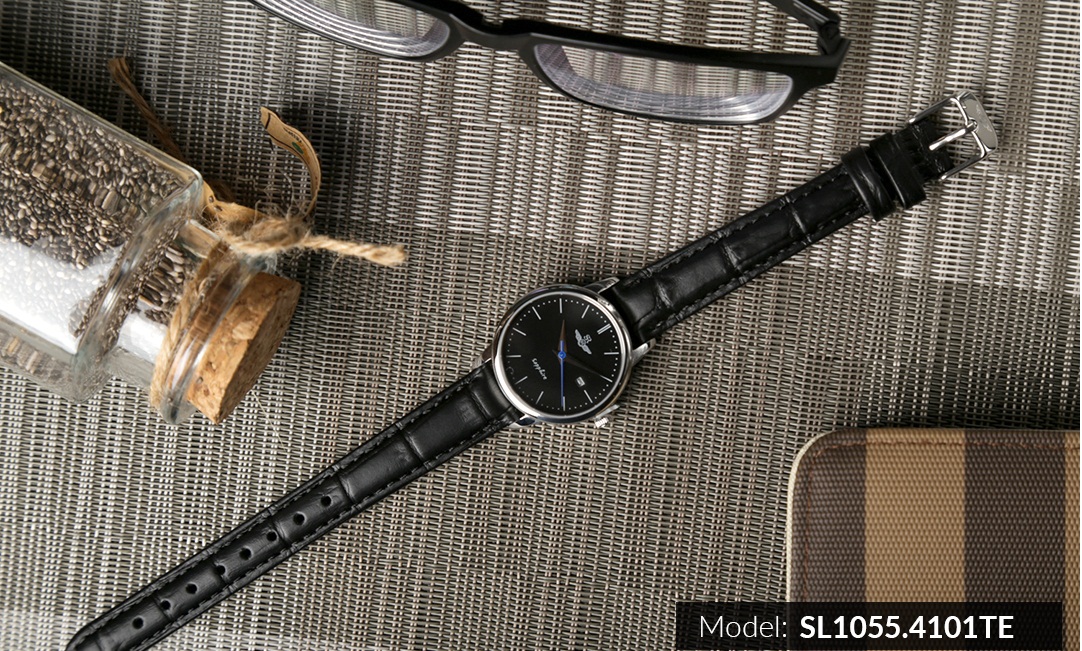 ĐỒNG HỒ SRWATCH DÂY DA NỮ 3 KIM SL1055.4101TE vỏ được làm từ nguyên liệu inox đúc, mặt kính Sapphire Crystal nguyên khối chống trầy xước, khả năng chịu nước 5 ATM, đồng hồ thời trang 3 kim xem giờ truyền thống và 1 lịch ngày, mặt tròn màu đen