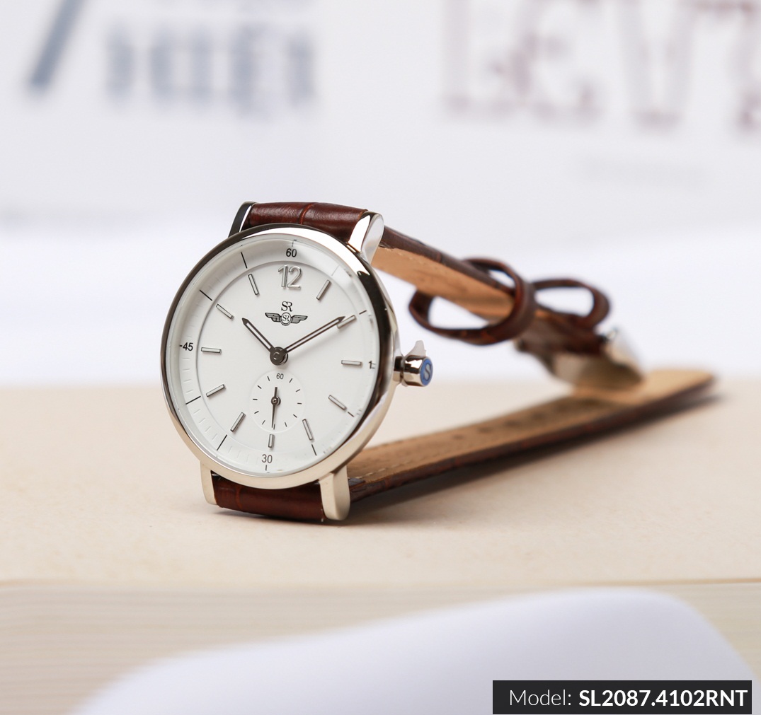 ĐỒNG HỒ SRWATCH DÂY DA NỮ 3 KIM SL2087.4102RNT Dây da cao cấp màu vàng nâu có vân gồm 2 lớp có tác dụng chống thấm, vỏ được làm từ nguyên liệu inox, mặt kính Sapphire Crystal chống trầy xước, khả năng chịu nước dưới áp xuất 50M, đồng hồ thời trang 3 kim xem giờ truyền thống, mặt tròn màu trắng, các kim chỉ và cọc số có dạ quang.
