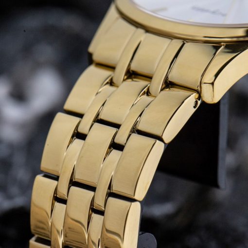 ĐỒNG HỒ SRWATCH DÂY KIM LOẠI NAM 3 KIM SG1076.1402TE dây, vỏ inox đúc mạ màu vàng công nghệ PVD cao cấp không phai, mặt kính Sapphire Crystal nguyên khối chống trầy xước, khả năng chịu nước 5ATM, đồng hồ thời trang 3 kim xem giờ truyền thống, mặt tròn màu trắng.