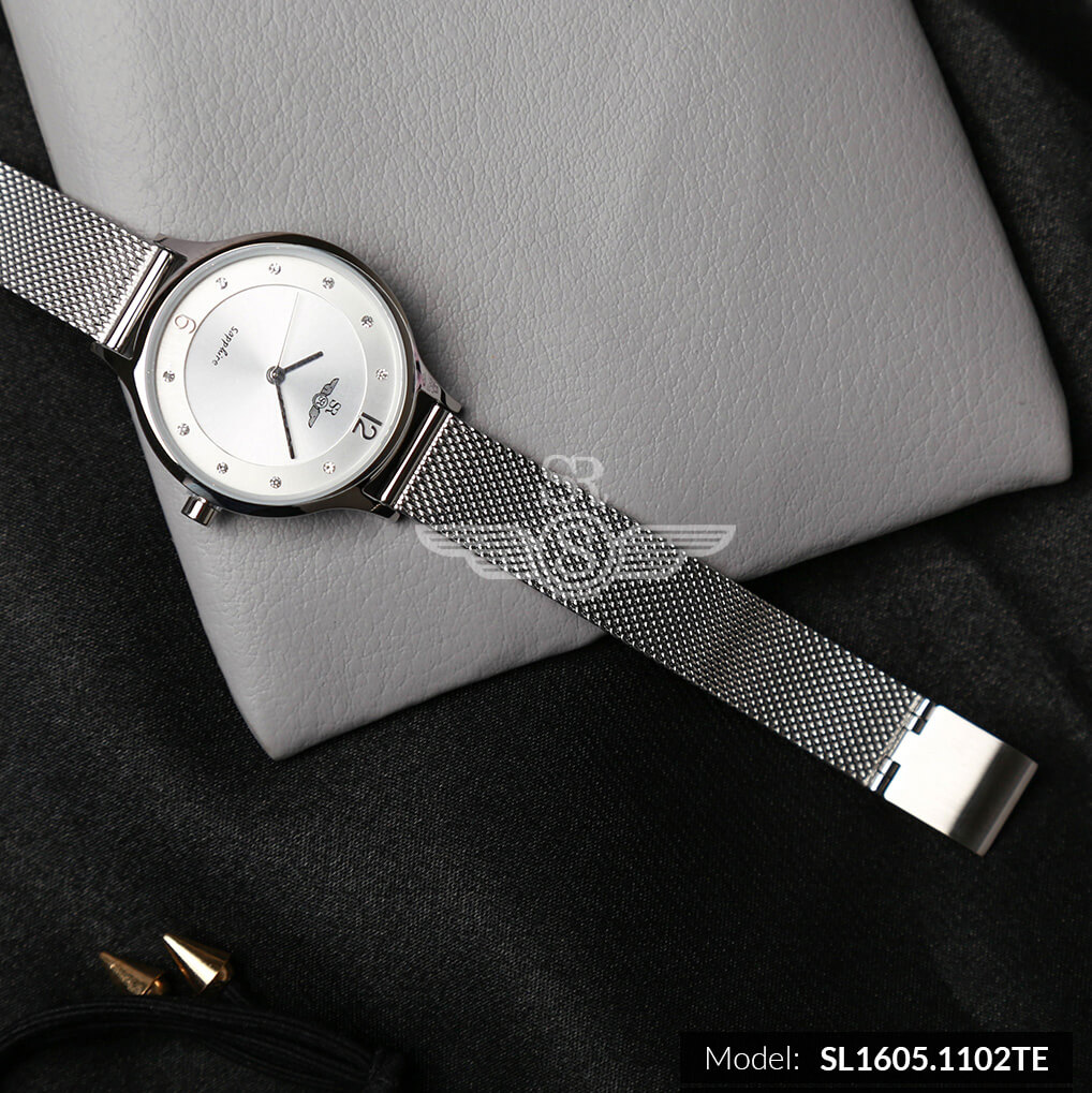Đồng hồ chính hãng ĐỒNG HỒ SRWATCH DÂY LƯỚI NỮ 3 KIM SL1605.1102TE Sử dụng bộ máy từ Nhật Bản, dây và vỏ inox, mặt kính sapphire nguyên khối chống trầy xước. Đồng hồ 3 kim xem giờ truyền thống.