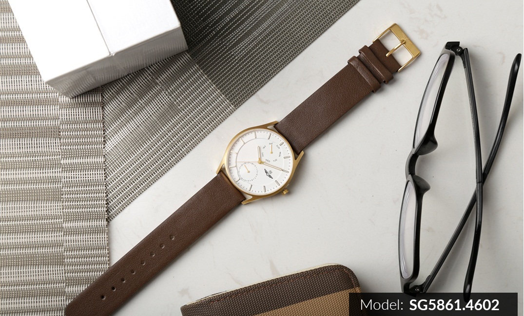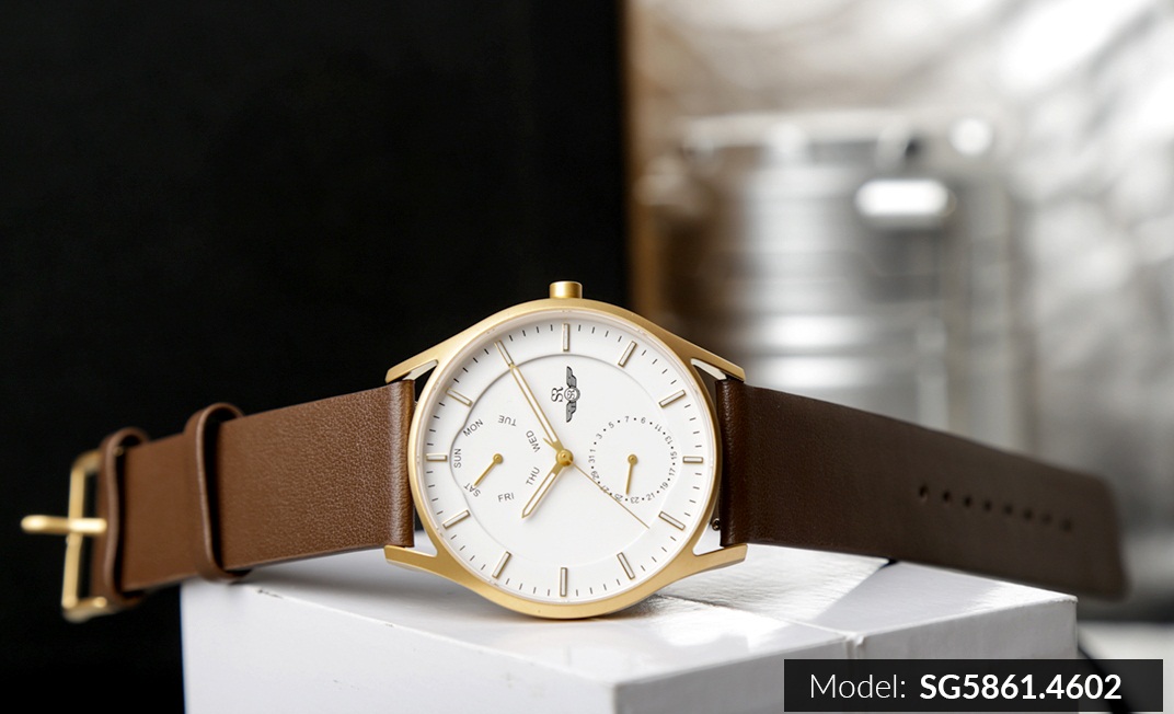 ĐỒNG HỒ SRWATCH NAM DÂY DA 5 KIM SG5861.4602 xuất xứ thương hiệu Nhật Bản, kiểu dáng đồng hồ thời trang, dây da cao cấp 2 lớp chống thấm, vỏ inox đúc nguyên khối có độ bền cao và chắc chắn, mặt kính sapphire nguyên khối chống trầy xước. Đồng hồ 5 kim xem giờ truyền thống, lịch thứ và lịch ngày.