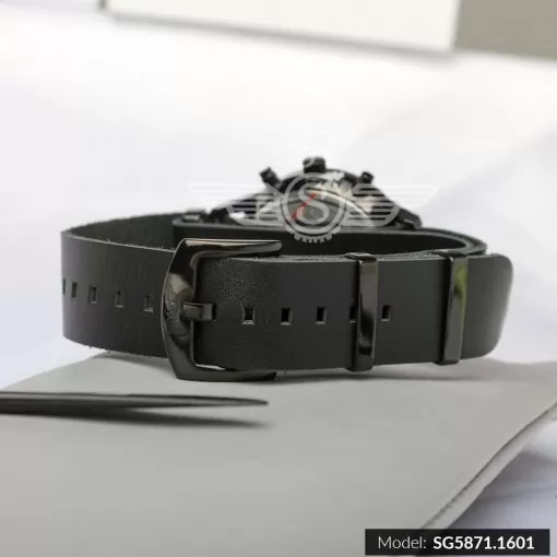 Đồng hồ đeo tay cao cấp chính hãng SRWATCH NAM DÂY DA 5 KIM SG5871.1601 xuất xứ thương hiệu Nhật Bản, kiểu dáng đồng hồ thời trang, dây da cao cấp 2 lớp có chức năng chống thấm, vỏ máy được làm từ nguyên liệu Inox mạ màu đen bằng công nghệ PVD cao cấp không phai màu, kính sapphire nguyên khối chống trầy xước, mặt đồng hồ màu đen, 2 kim ô nhỏ và kim giây màu đỏ, kim chỉ giờ, phút và cọc số màu bạc nổi bật. Đồng hồ 5 kim hiển thị giờ, phút, giây truyền thống và 1 lịch ngày.