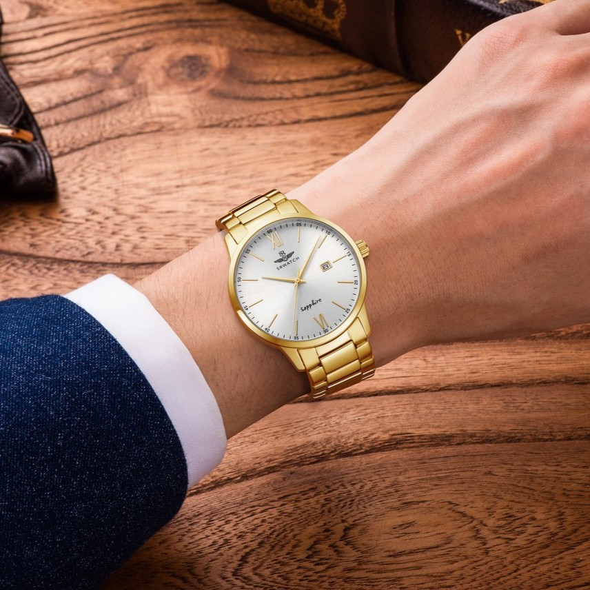 ĐỒNG HỒ SRWATCH NAM – SG3011.1402CV – QUARTZ (PIN) – DÂY VÀNG – SAPPHIRE – 5ATM – 40MM sử dụng bộ máy Nhật Bản chính hãng. Kiểu dáng đồng hồ thời trang, mặt kính sapphire chống trầy xước. Dây, vỏ inox đúc nguyên khối mạ màu vàng theo công nghệ PVD không phai, cọc số đơn giản sắc nét, sang trọng, lịch lãm.