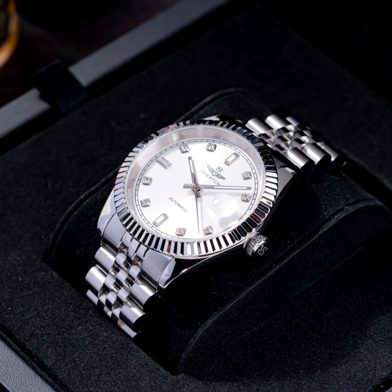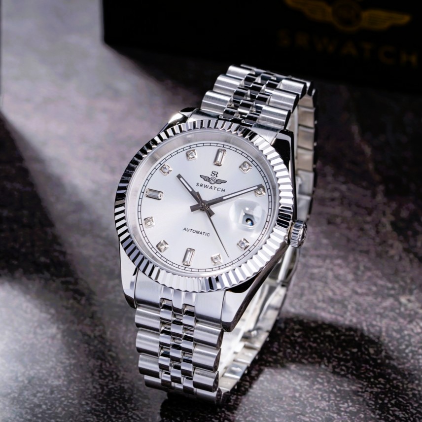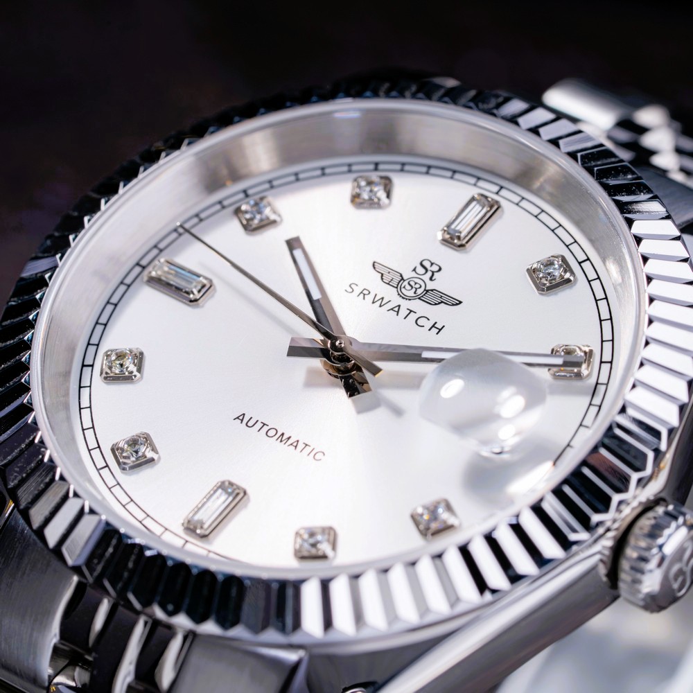 ĐỒNG HỒ SRWATCH NAM SG88805.1102AT – AUTOMATIC – DÂY KIM LOẠI sử dụng bộ máy tự động Nhật Bản chính hãng. Kiểu dáng đồng hồ thời trang với thiết kế mặt tròn màu trắng, vỏ và dây đồng hồ phối hai màu (đờ mi) trắng bóng và trắng mờ, cọc số đính đá sang trọng. Cùng 3 kim xem giờ truyền thống và 1 lịch ngày góc 3h có kính lúp giúp xem ngày được dễ dàng hơn. Mặt kính sapphire chống trầy xước kết hợp với độ chống nước 5ATM nên có thể sử dụng hàng ngày một cách thoải mái.