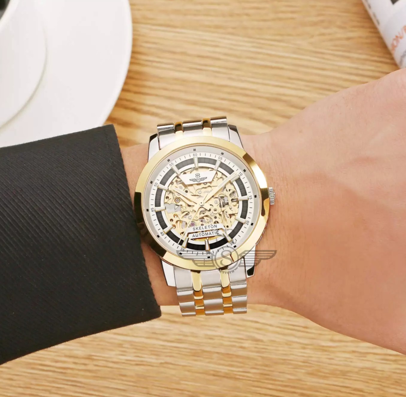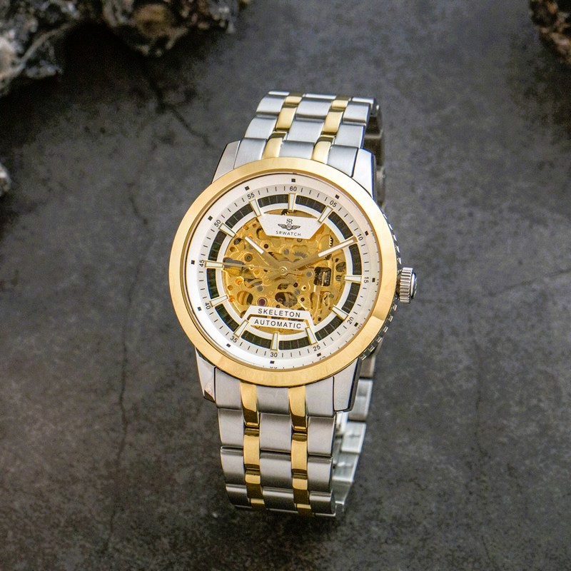 ĐỒNG HỒ SRWATCH – NAM – SKELETON – TỰ ĐỘNG (AUTOMATIC) – LỘ MÁY – SG8898.1202 sử dụng bộ máy cợ (tự động) Nhật Bản chính hãng. Kiểu dáng đồng hồ thời trang, mặt kính sapphire nguyên khối chống trầy xước. Dây, vỏ inox đúc mạ màu vàng (đờ mi) công nghệ PVD cao cấp không phai, độ chống nước 5ATM (50M).