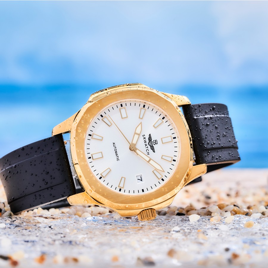 ĐỒNG HỒ SRWATCH – NAM – TỰ ĐỘNG (AUTOMATIC) – DÂY CAO SU – 3 KIM – SG88803.4602AT sử dụng bộ máy cơ (tự động) Nhật Bản chính hãng. Kiểu dáng đồng hồ thời trang, mặt kính sapphire nguyên khối chống trầy xước. Dây cao su chính hãng cao cấp không thấm nước, không biến dạng theo thời gian, vỏ inox đúc nguyên khối mạ màu vàng công nghệ PVD cao cấp không phai, độ chống nước 5ATM (50M).
