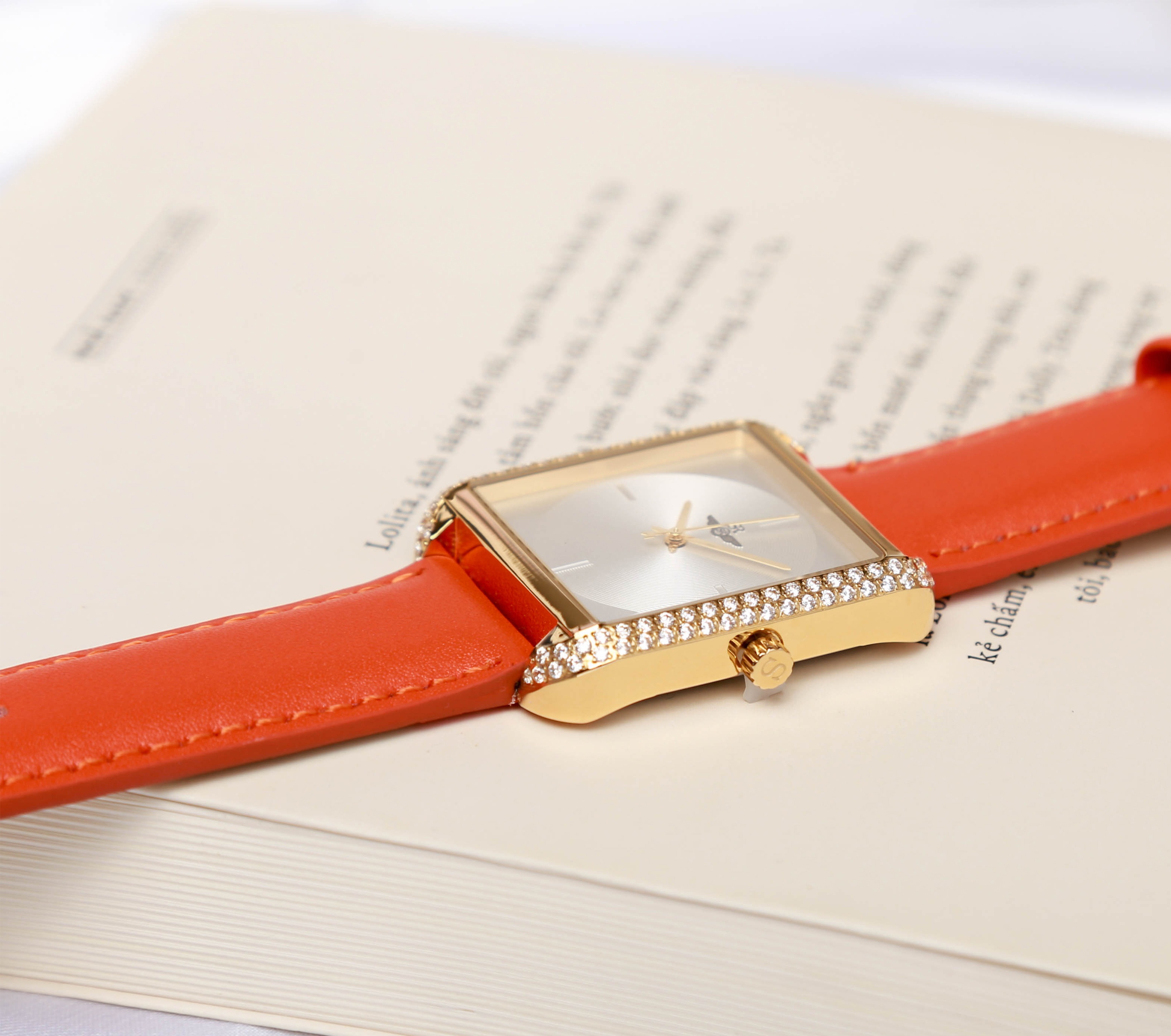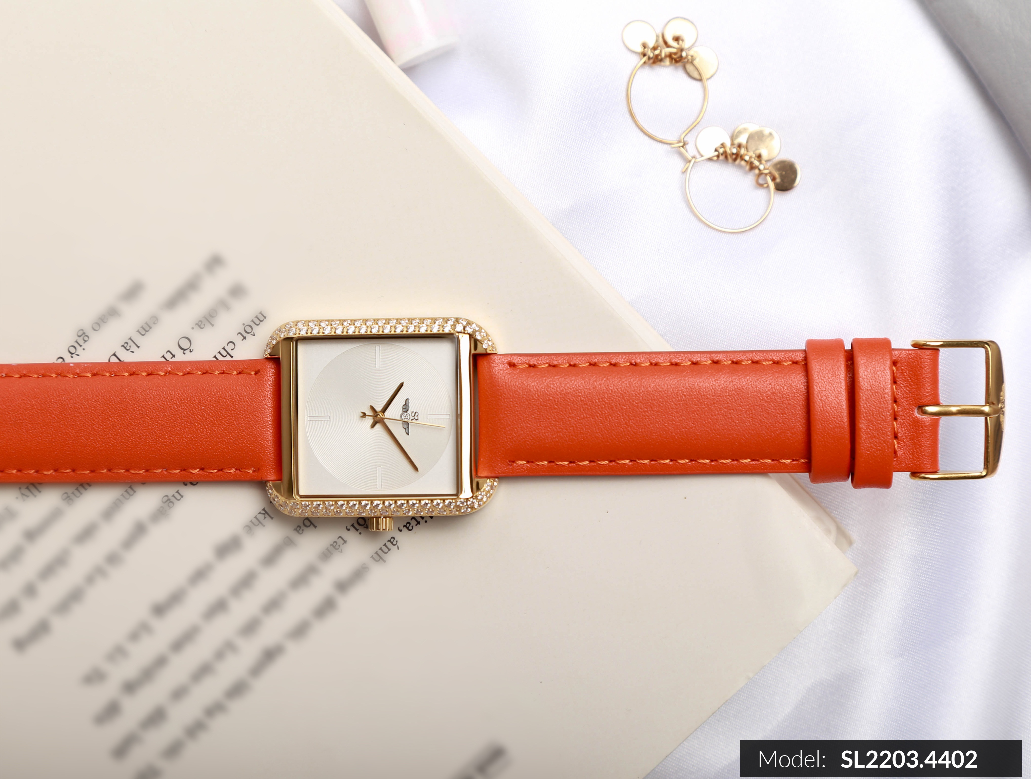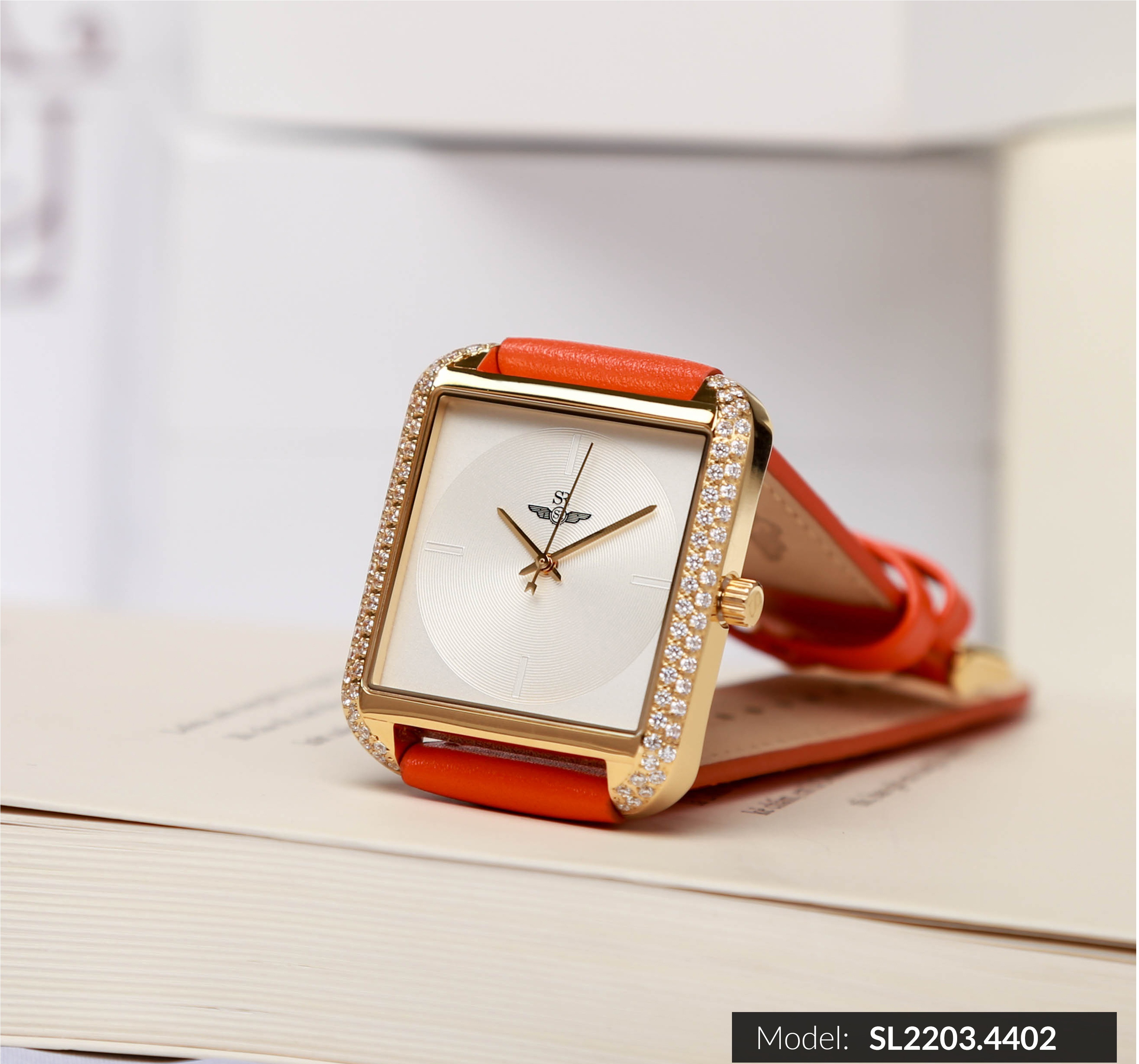 ĐỒNG HỒ SRWATCH NỮ DÂY DA 3 KIM ĐÍNH ĐÁ SL2203.4402 sử dụng máy Nhật Bản chính hãng, kiểu dáng đồng hồ thời trang được đính đá trắng ở viền máy sang trọng Đồng hồ nữ Sunrise mặt hình chữ vuông, dây da cao cấp gồm 2 lớp chống thấm, vỏ thép không gỉ mạ vàng công nghệ PVD cao cấp không phai, mặt kính sapphire nguyên khối chống trầy xước. Đồng hồ 3 kim xem giờ truyền thống.