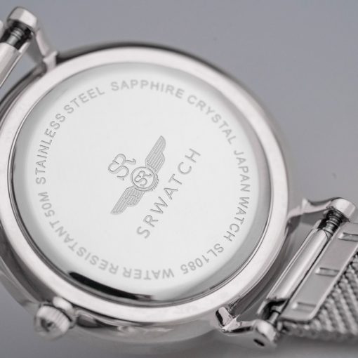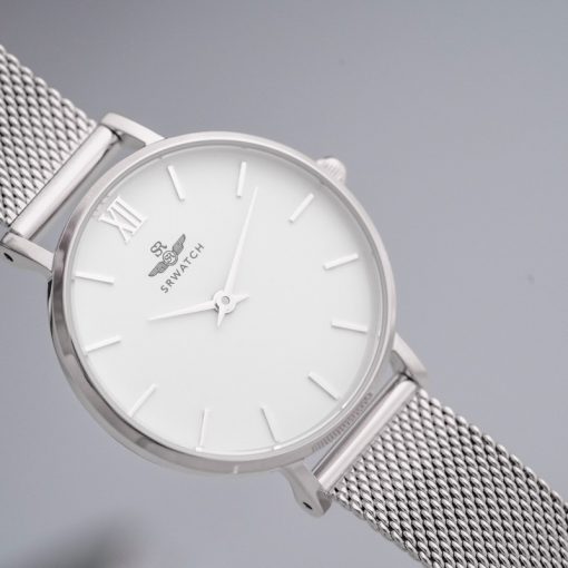 Đồng hồ chính hãng SRWATCH NỮ DÂY KIM LOẠI 2 KIM SL1085.1102 Dây và vỏ inox ( Steel ) mặt kính Sapphire Crystal chóng trầy xước, khả năng chịu nước dưới áp xuất 30M, đồng hồ thời trang nữ thanh lịch 2 kim xem giờ truyền thống, mặt nền màu trắng, các cọc số và chỉ số giờ màu bạc.