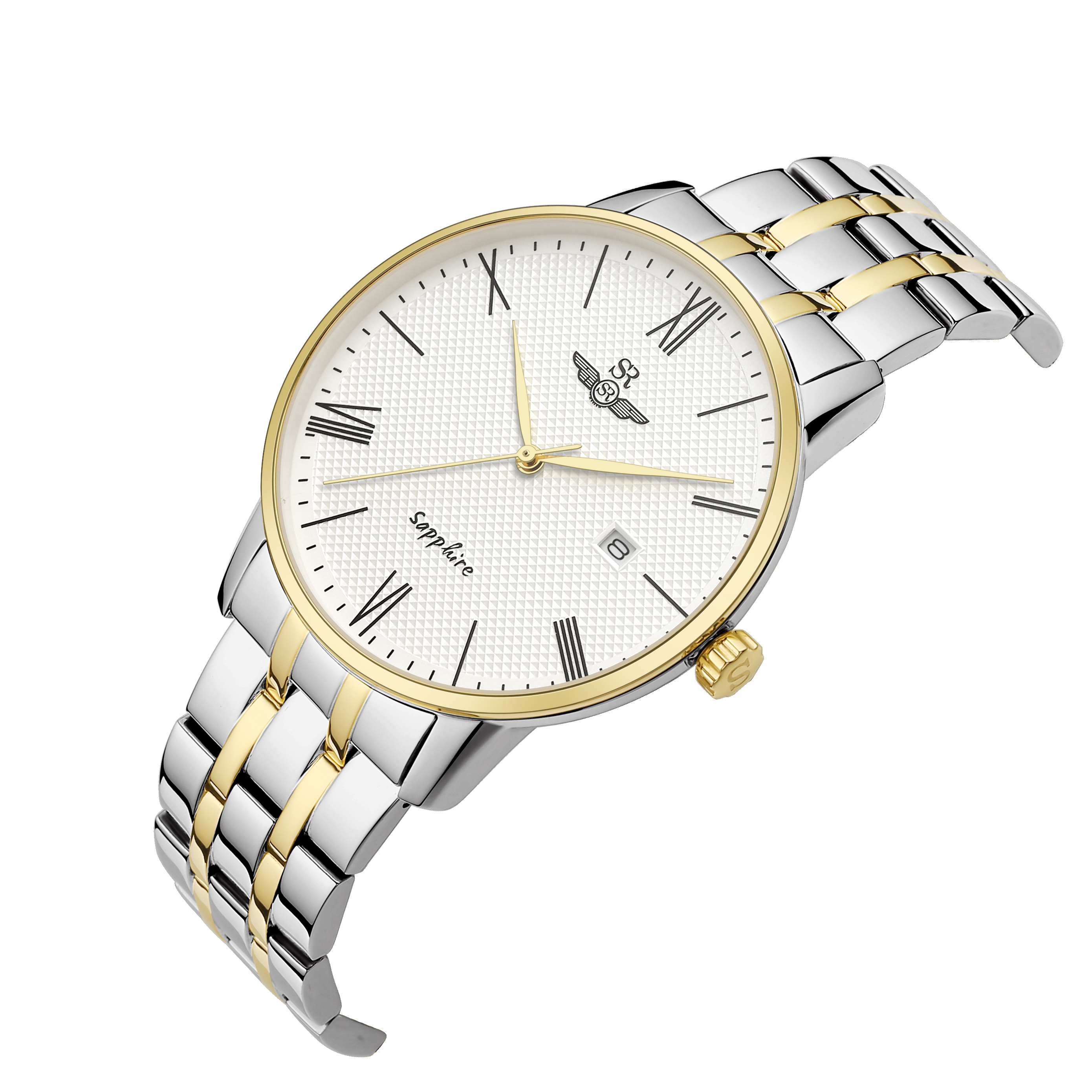 ĐỒNG HỒ SUNRISE NAM DÂY KIM LOẠI 3 KIM CHÍNH HÃNG SG1074.1202TE thiết kế thời trang cùng những chi tiết ấn tượng với mặt đồng hồ tròn đường kính đến 40mm thích hợp cho phái mạnh. Dây đeo được mạ vàng cao cấp ở đường đờ mi, mặt đồng hồ màu trắng tạo nên kiểu dáng hài hòa, vừa thể hiện sự mạnh mẽ, vừa lịch lãm, sang trọng.