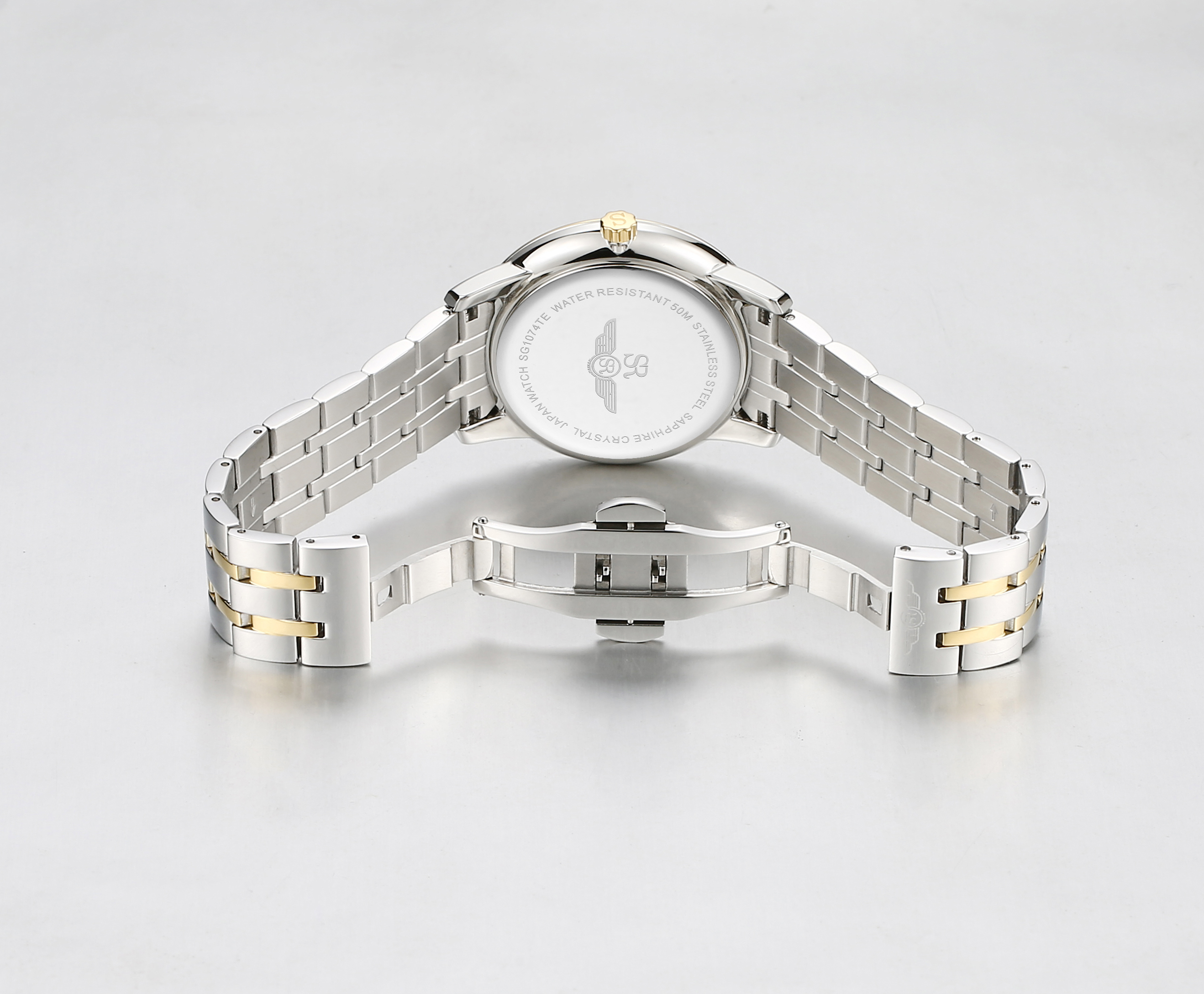 – Đồng hồ SUNRISE nam SG1074.1202TE với dây vỏ inox đúc mạ màu vàng (đờ mi) công nghệ PVD cao cấp không phai, mặt kính sapphire nguyên khối chống trầy xước. Đồng hồ 3 kim xem giờ truyền thống và 1 lịch ngày. Khả năng chịu nước 50M.